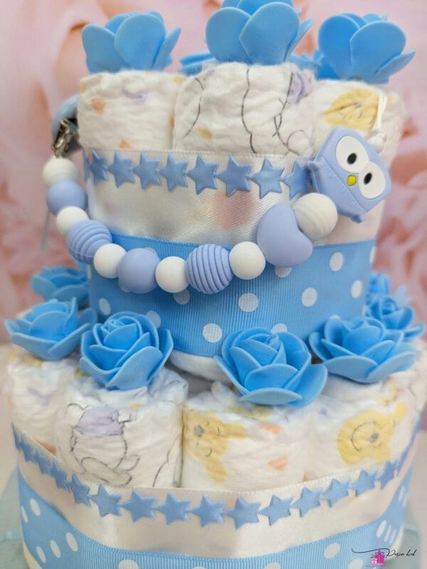 Mis saaks olla veel parem mänguasi, mida beebile esimesel kohtumisel kinkida, kui öökull – tarkuse sümbol? Ja mis veel toredam, see öökull on lennanud mähkmetest valmistatud tordi otsa, sest mähkmeid kulub beebil – palju!