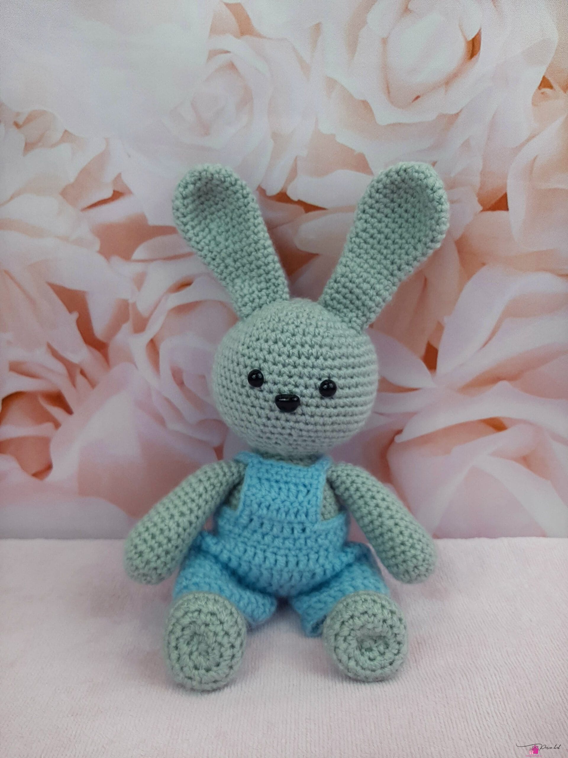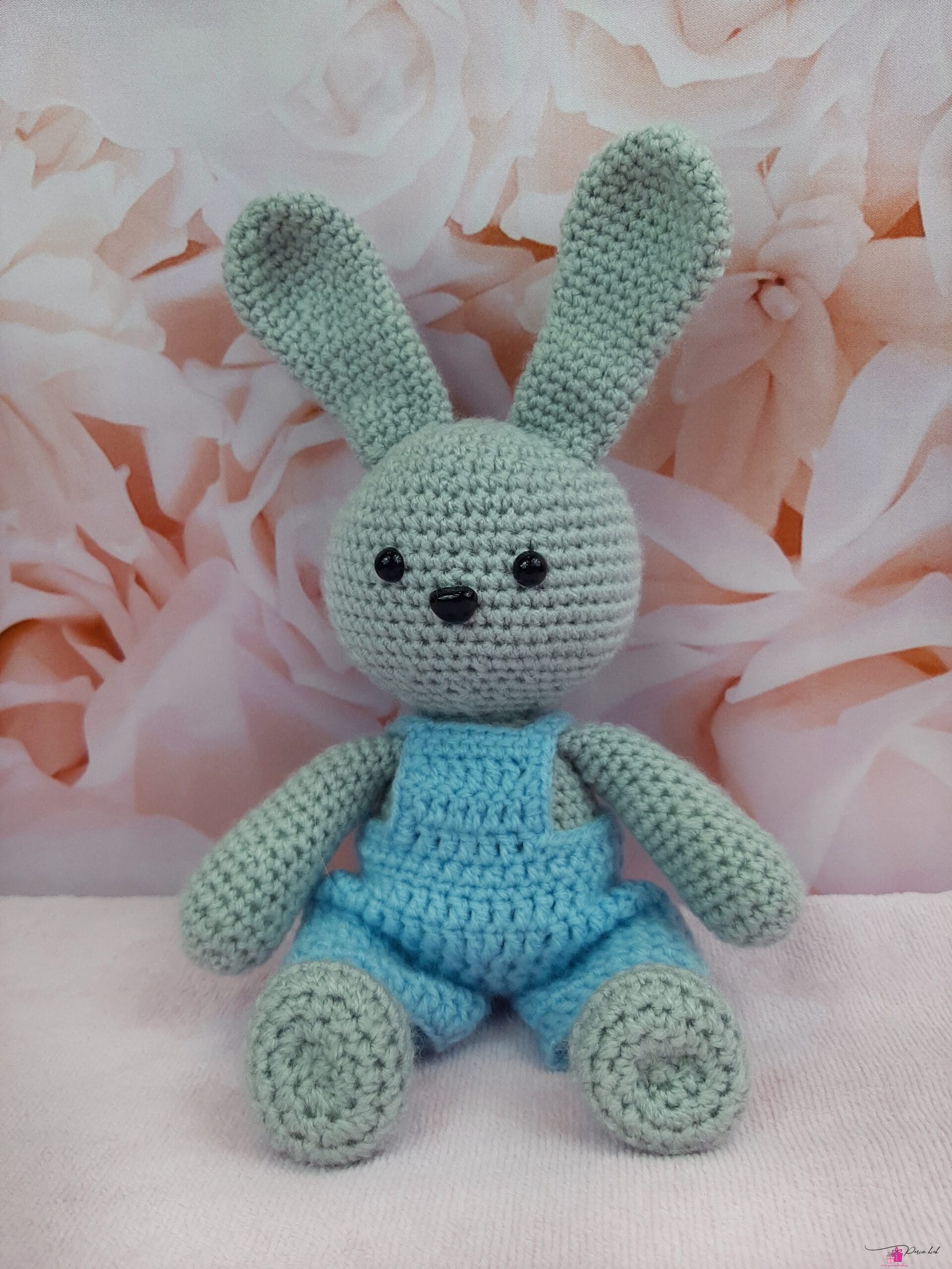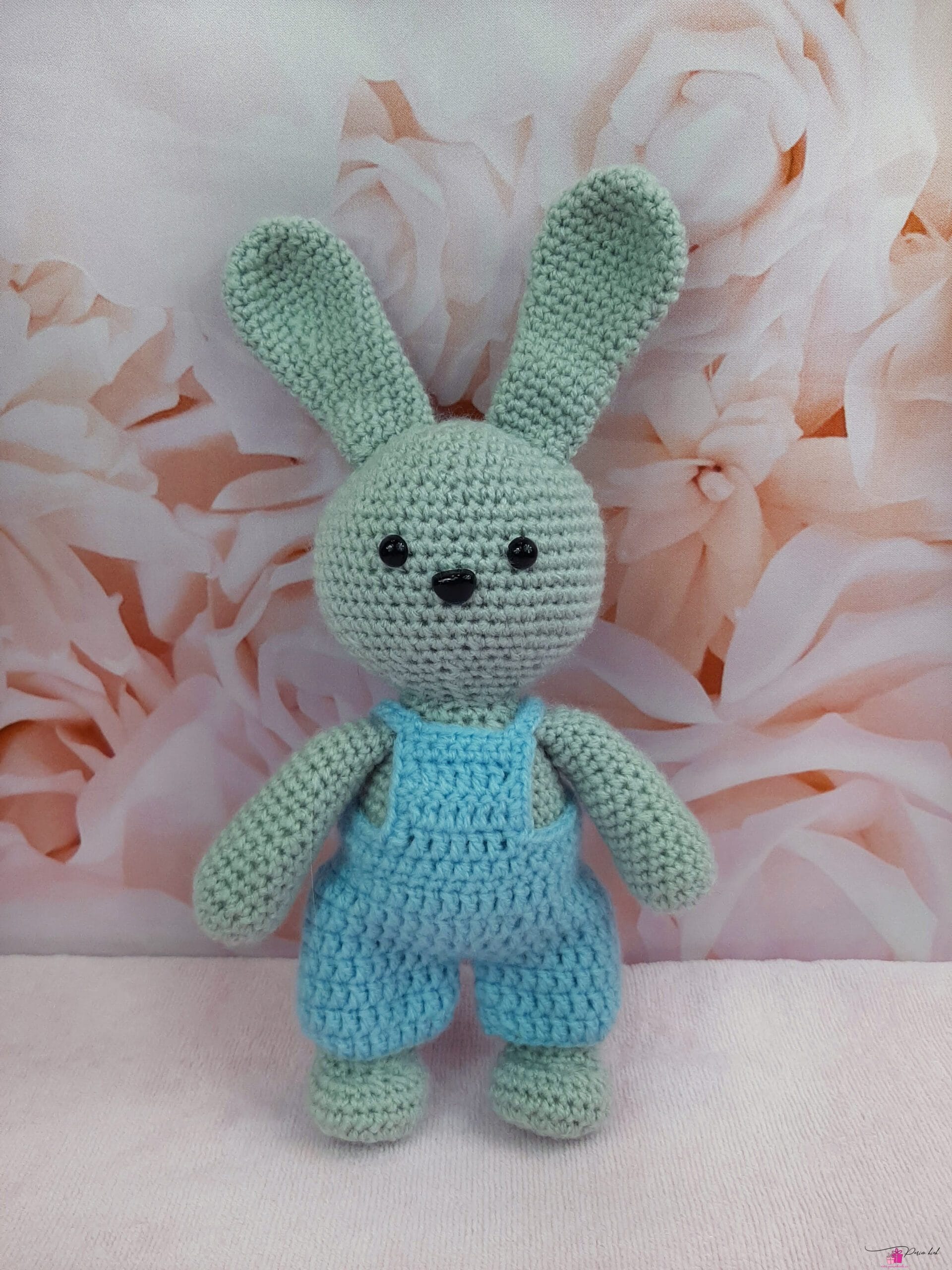 Käsitööna heegeldatud jänes on valmistatud spetsiaalsest beebile mõeldud lõngast, mis on kasutajasõbralik ja pehme.