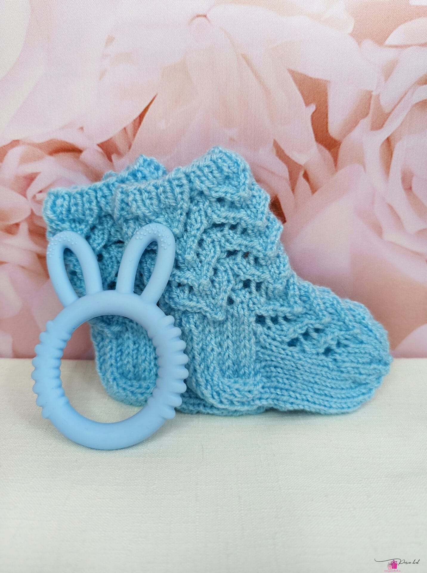 Käsitööna meie enda kootud pitssokid ning närimislelu on väga vahva kingikombo beebile. Pitssokid hoiavad beebi jalad soojana ja närimislelu aitab sügelevate igemete vastu.