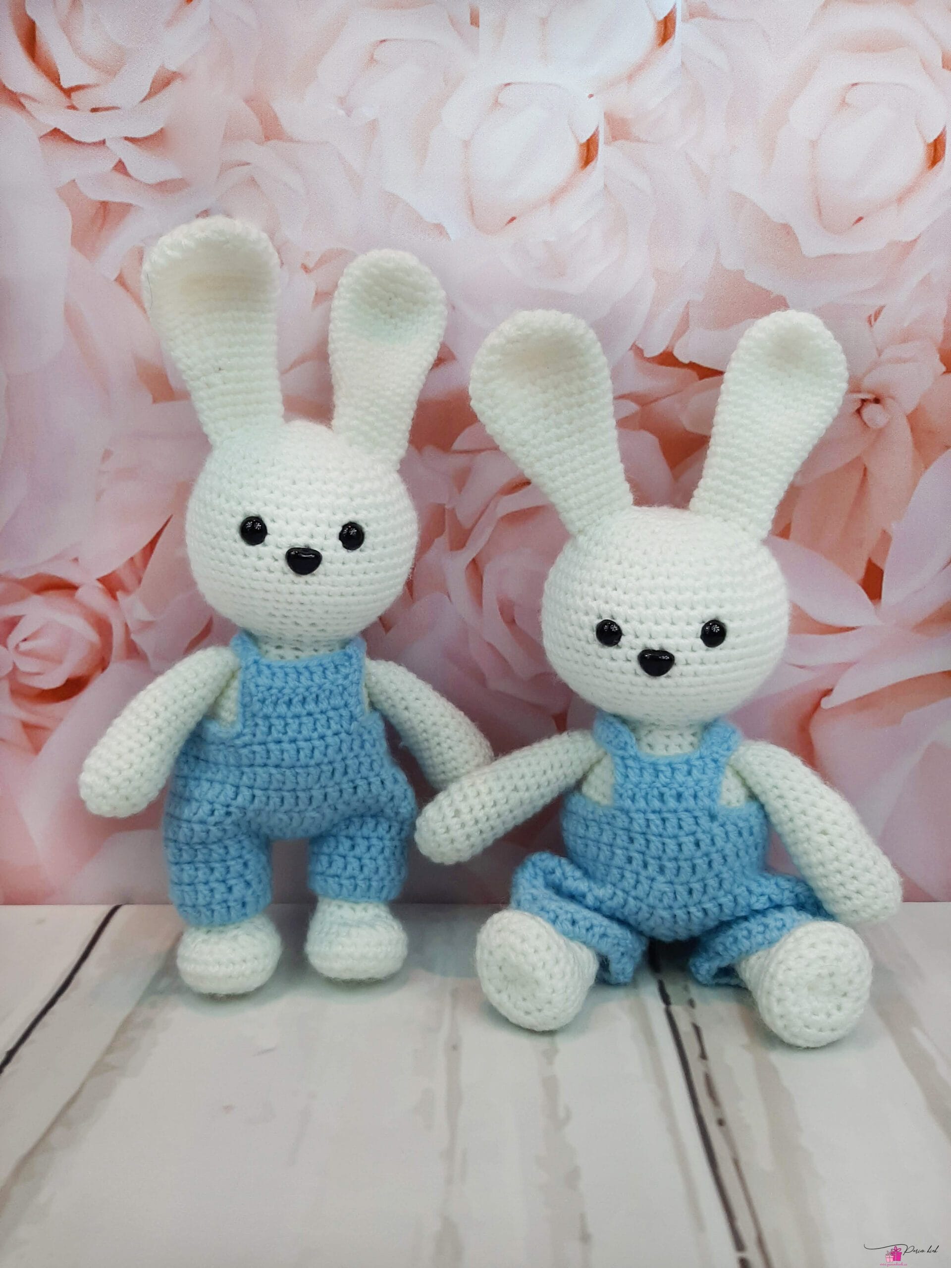 Ja kuna kaksikud on ühtemoodi armsad, siis heegeldasime käsitööna ka kaks ühesugust jänest, et mõlemale kaksikule võrdselt rõõmu valmistada.