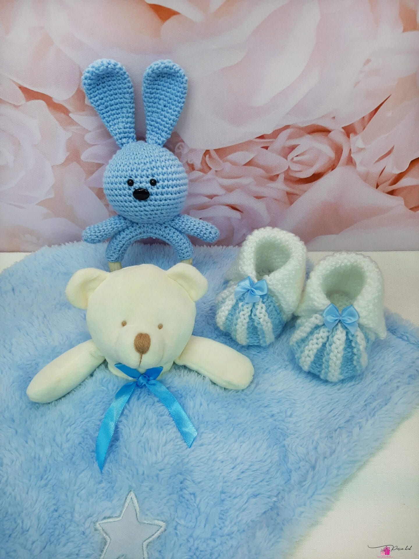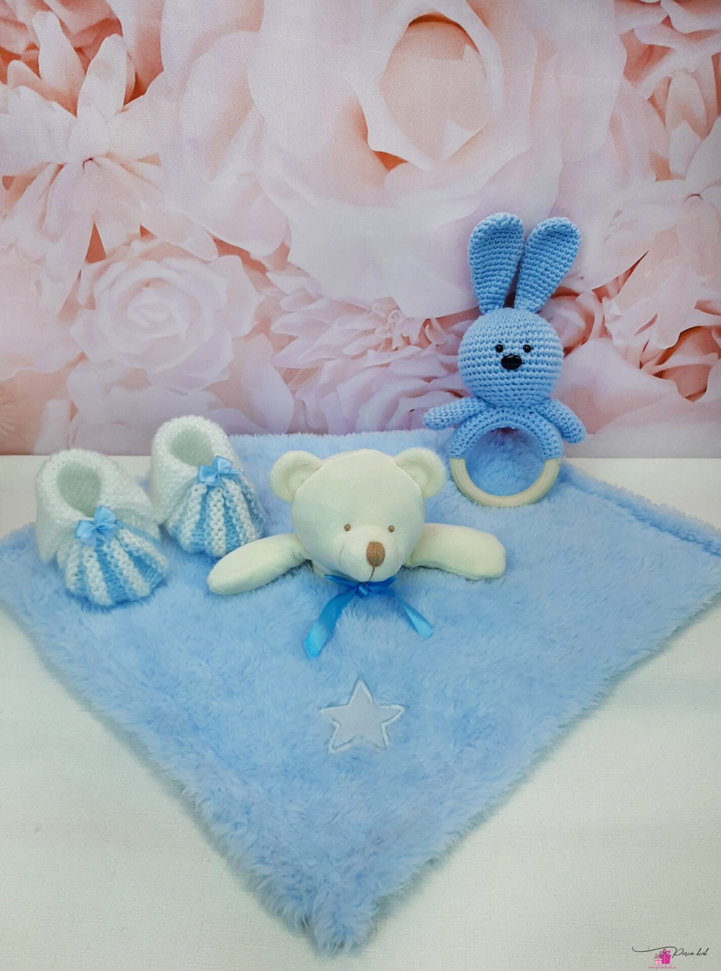Kingitus sisaldab endas kaisutekki, käsitööna kootud papusid ja heegeldatud jänese kõristit. Papud ning jänes on valminud beebisõbralikust lõngast meie enda poolt käsitööna.