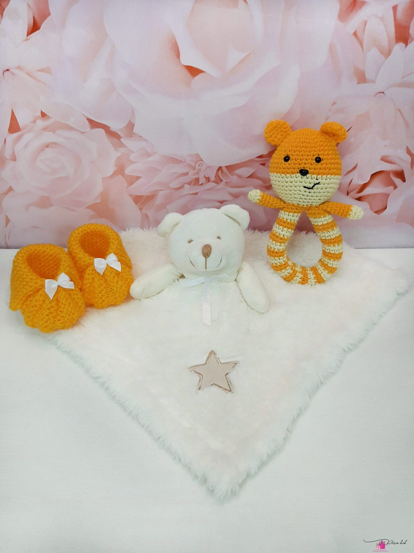 Kingitus sisaldab endas kaisutekki, käsitööna kootud papusid ja heegeldatud kõristit. Papud ning kõristi on valminud beebisõbralikust lõngast meie enda poolt käsitööna.