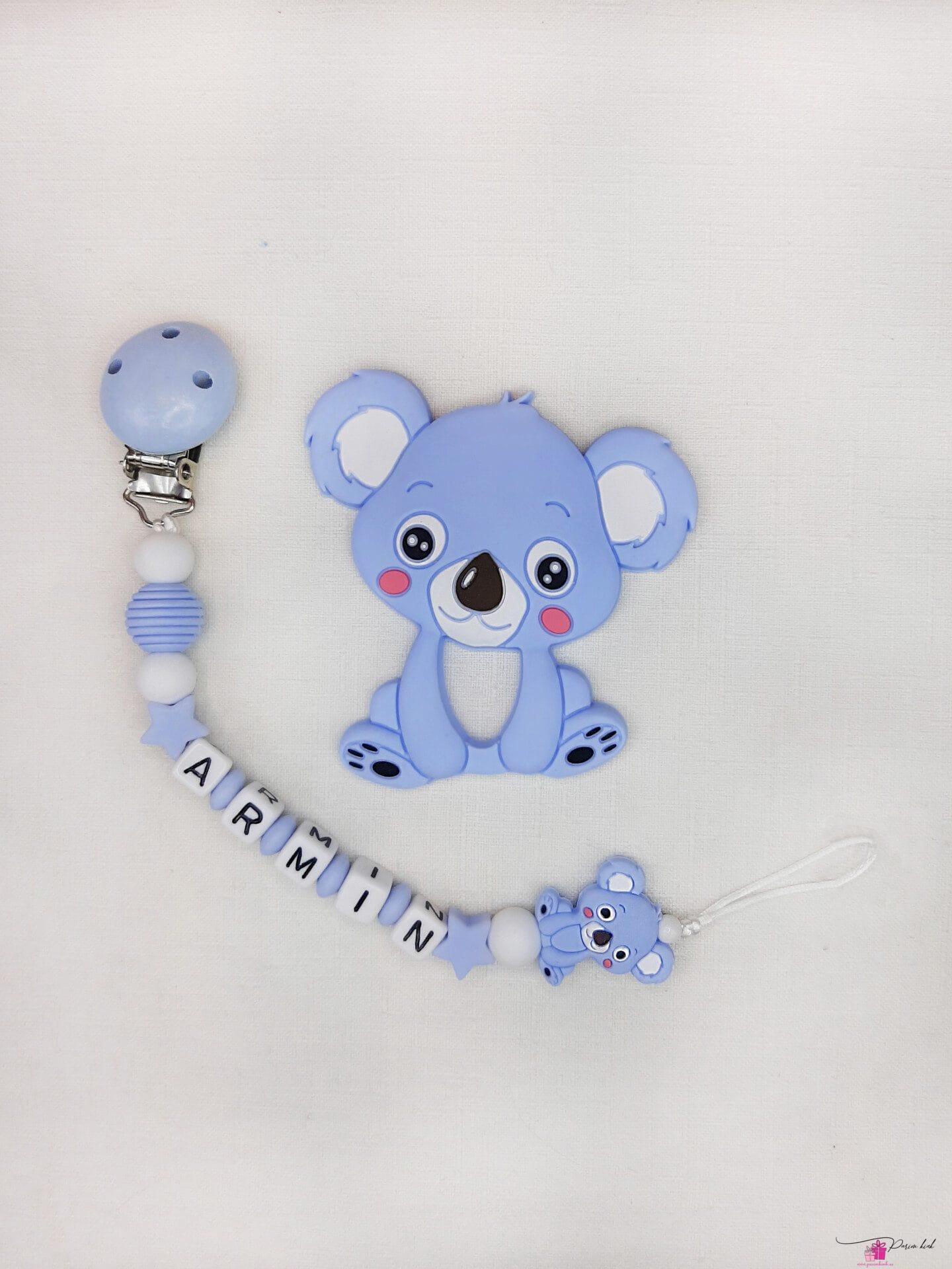Lutiketi materjalina kasutame BPA vabast silikoonist pärleid, nimetähed akrüülist ning puidust kinnitust.
