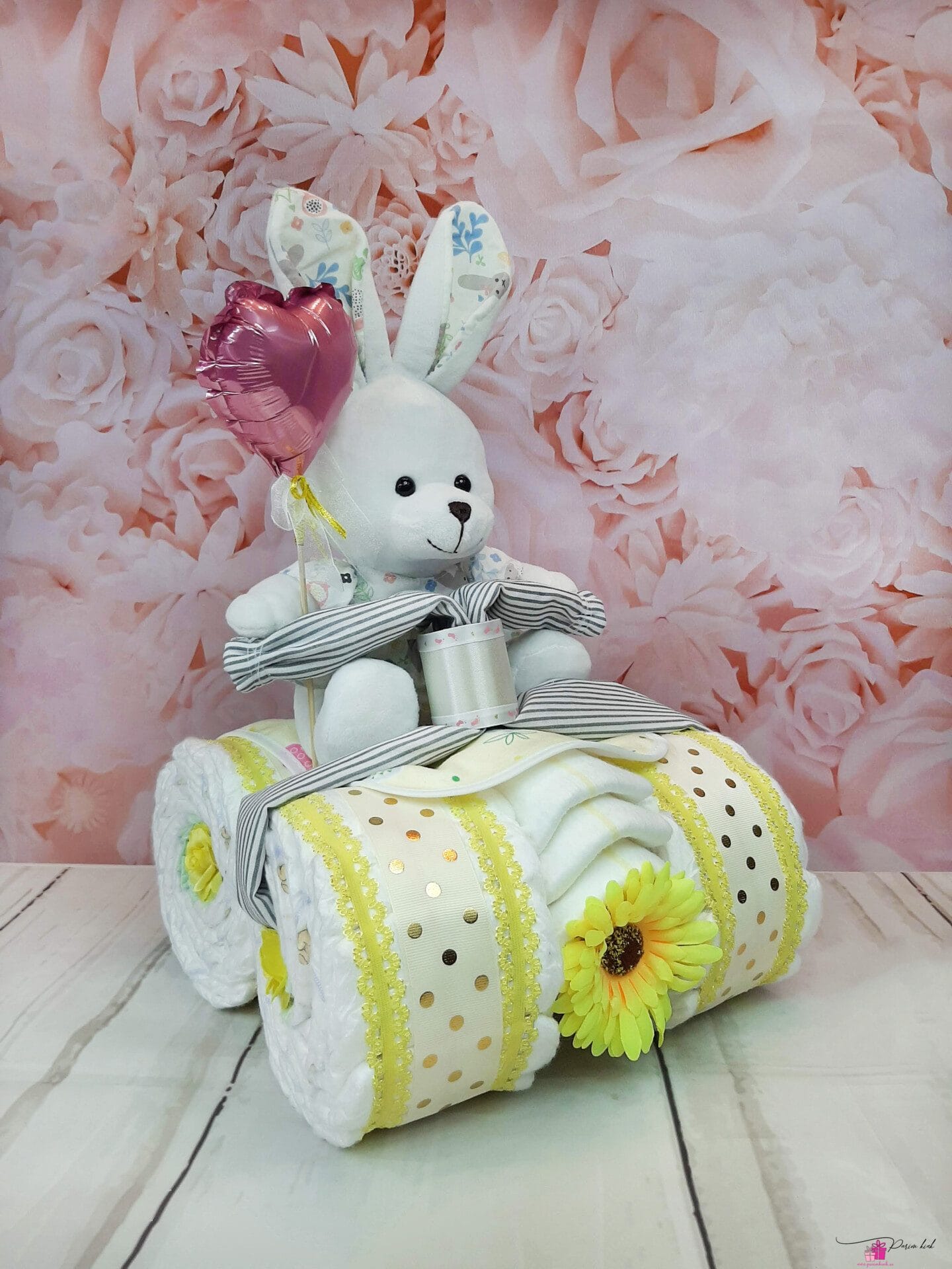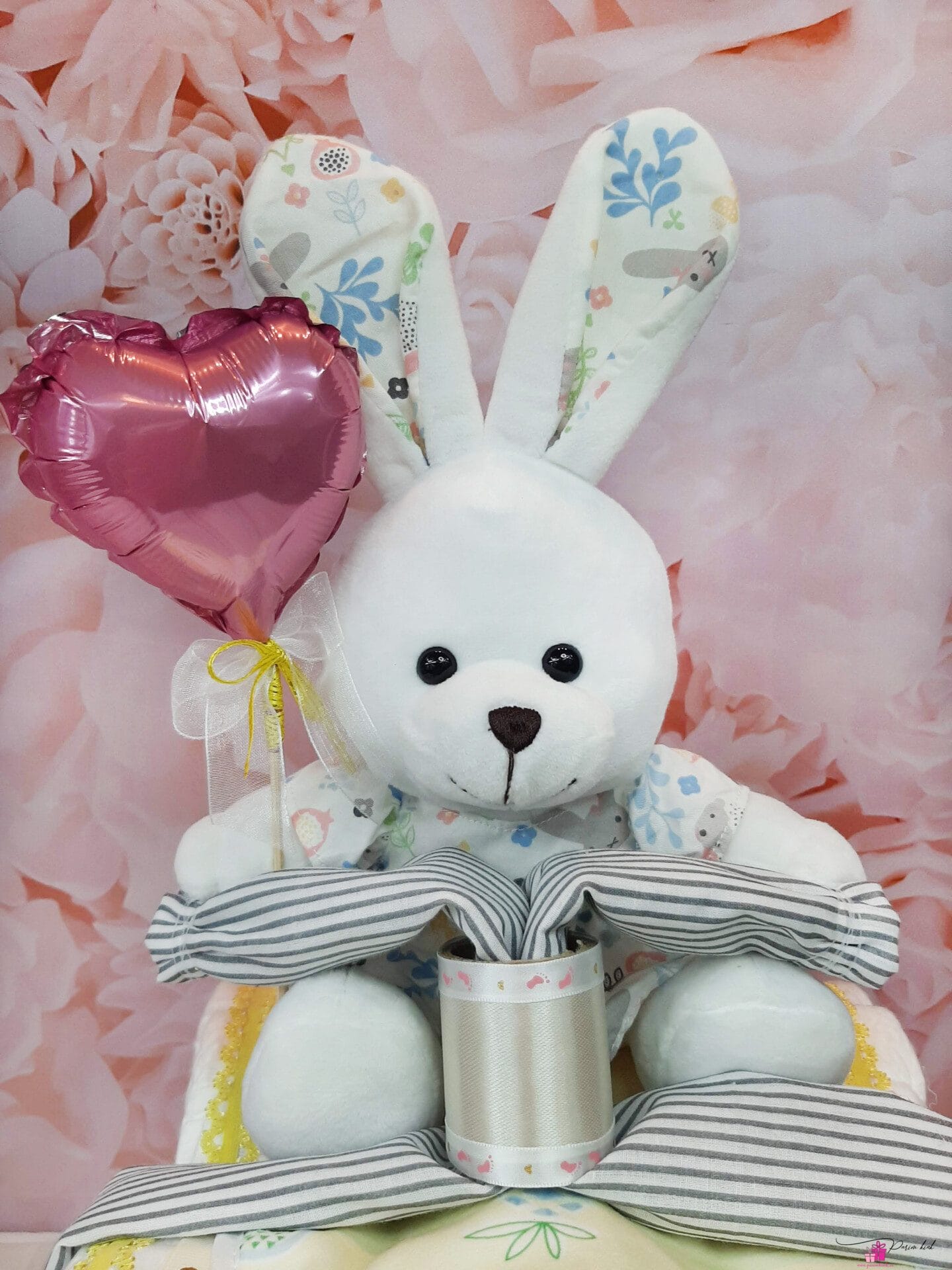 ATV mähkmetort sisaldab lisaks mähkmetele ka beebi pudipõlle, puuvillast lina (70x100cm) ja ei kedagi muud kui ühte maailma armsaimat jänkut!