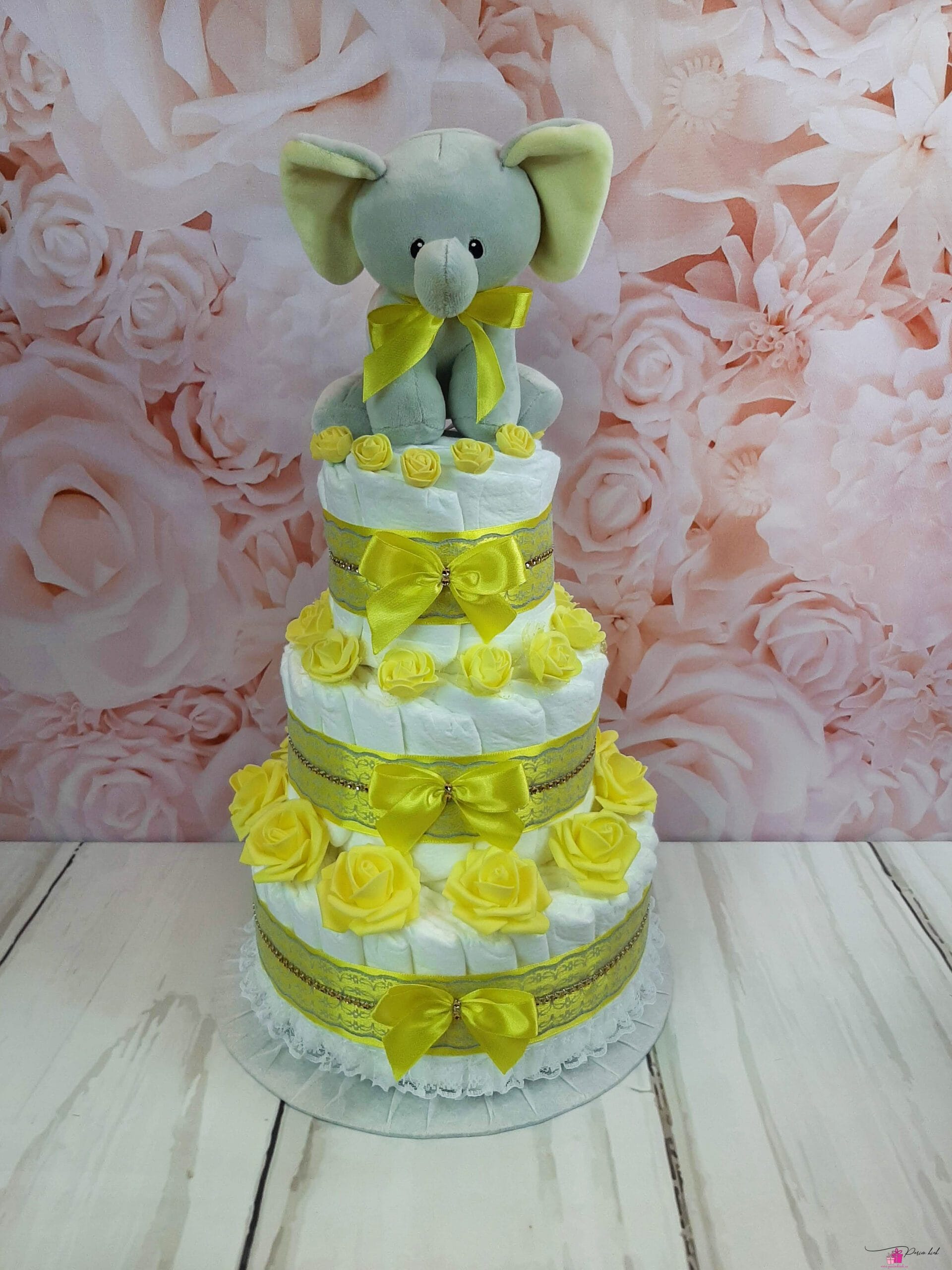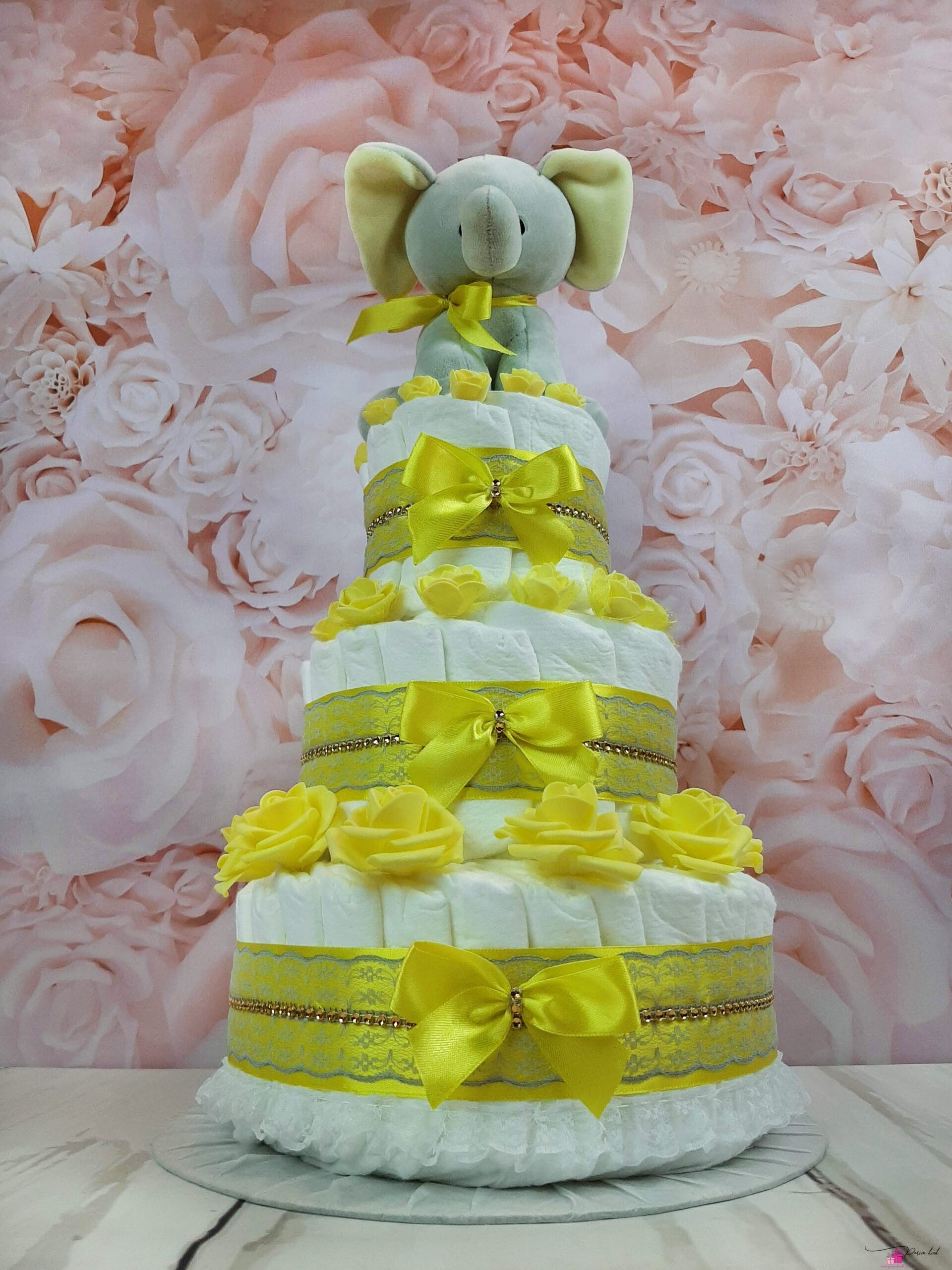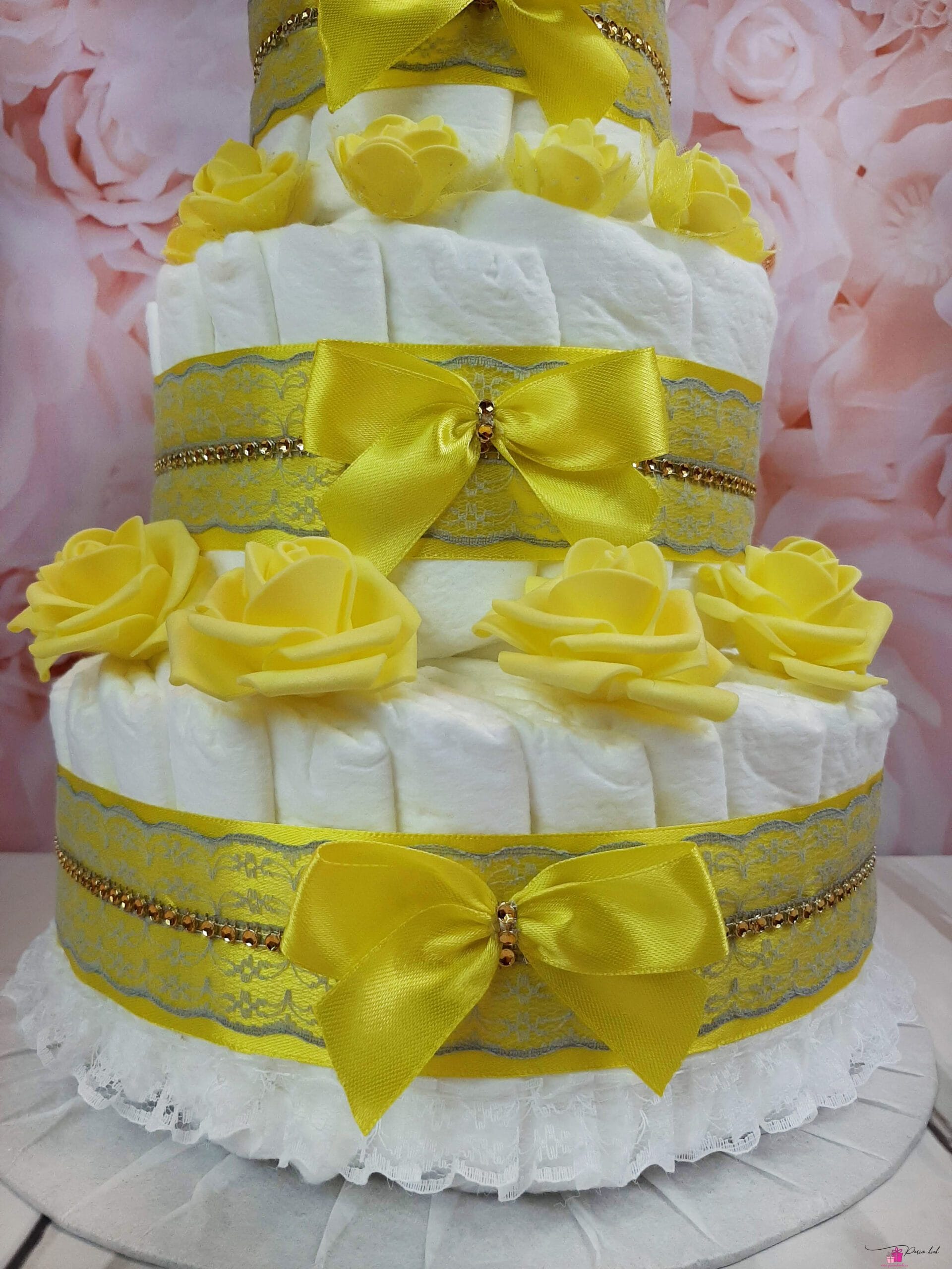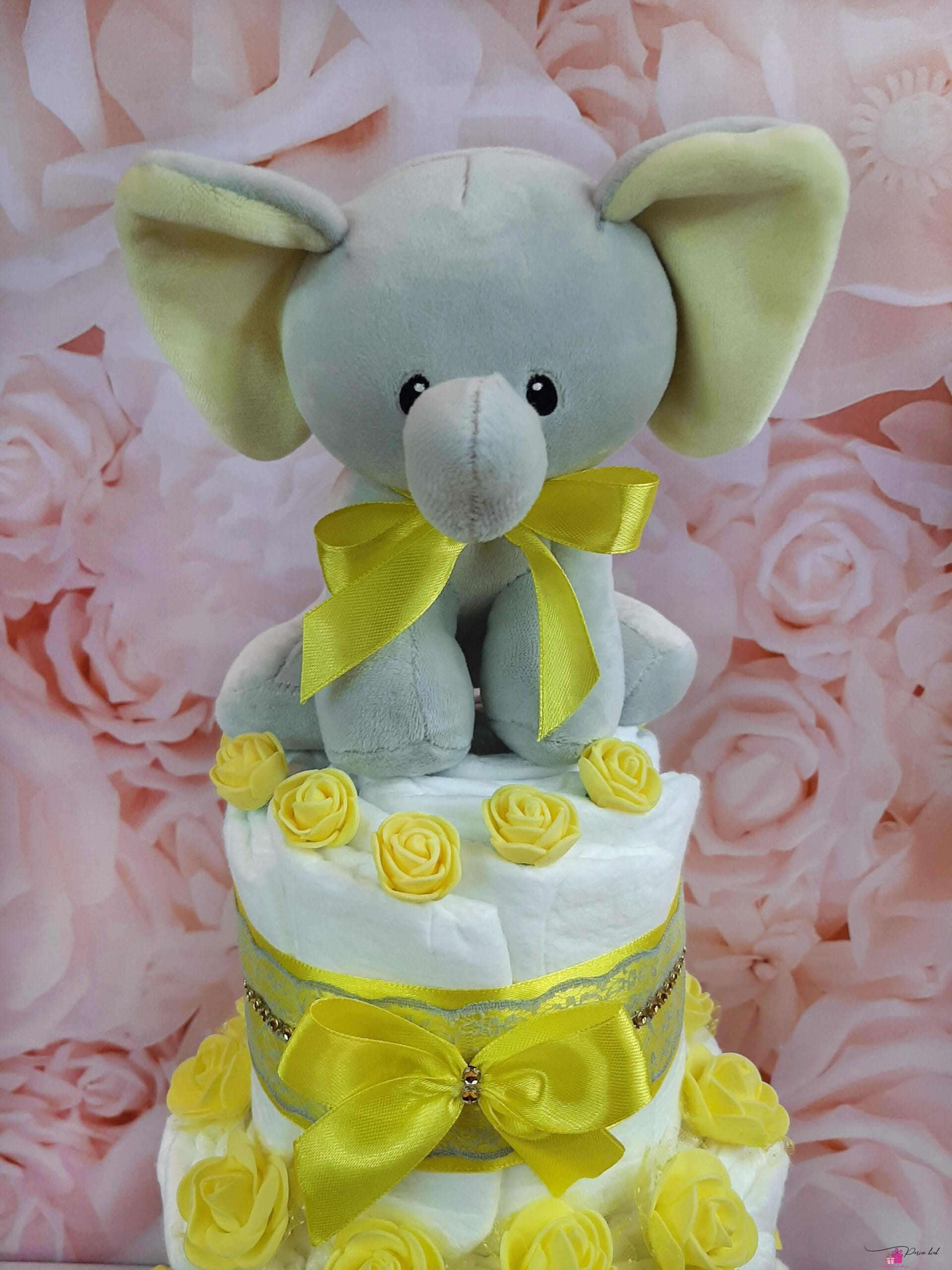 Mähkmetort on valmistatud 55-st mähkmest, pakitud tsellofaani ning kaunistatud suure rosetiga.