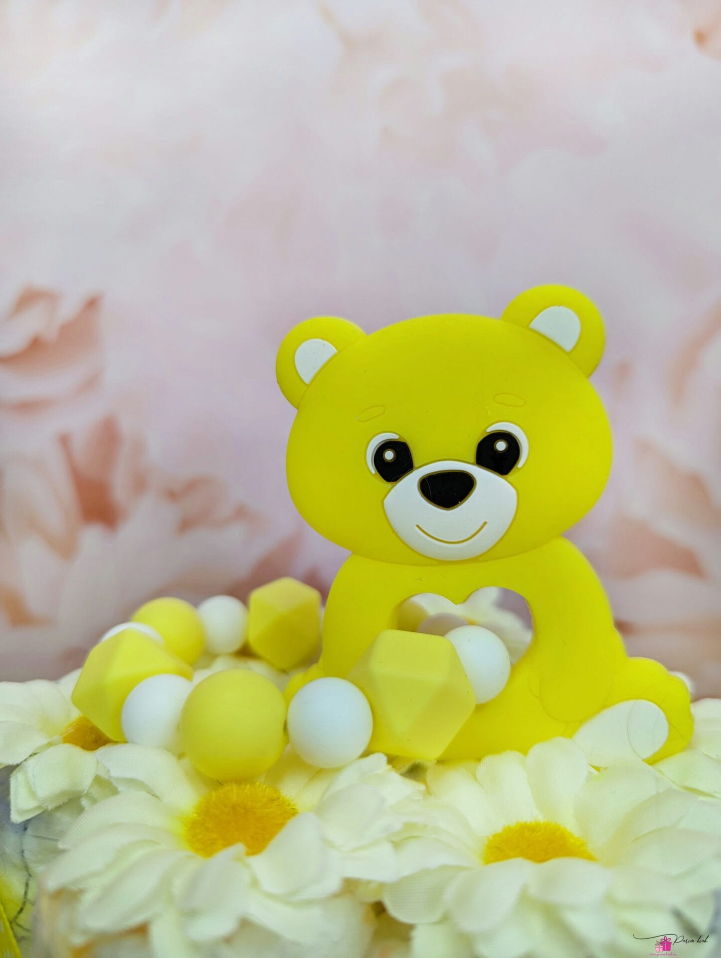 Tort sisaldab närimisrõngast, mis on valmistatud BPA vabast silikoonist pärlitest.