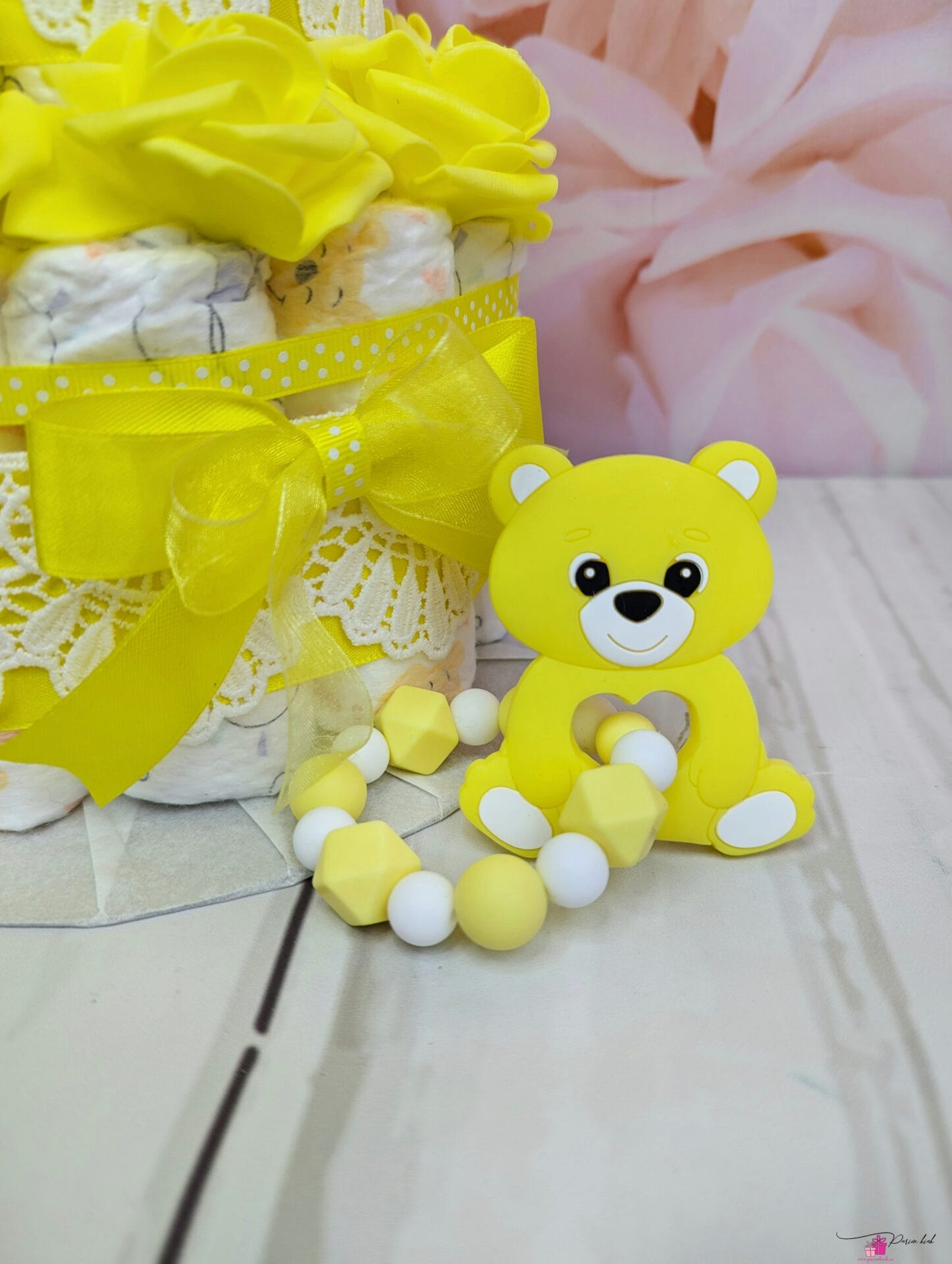 See mähkmetort on täpselt paraja suurusega ning väga praktiline. Selles on nii mähkmeid, kui ka närimisrõngas, mis aitab beebit hammaste tulekul.