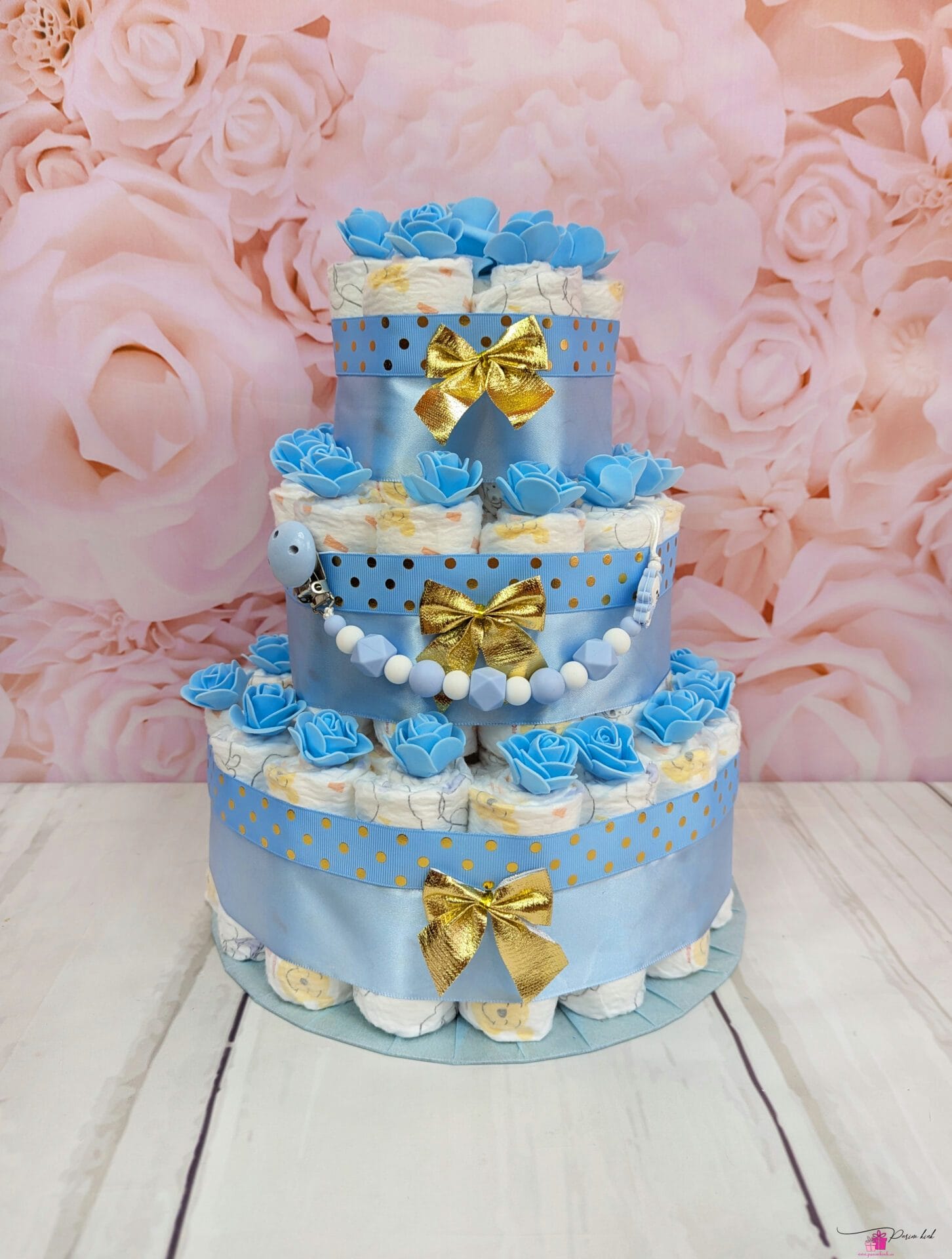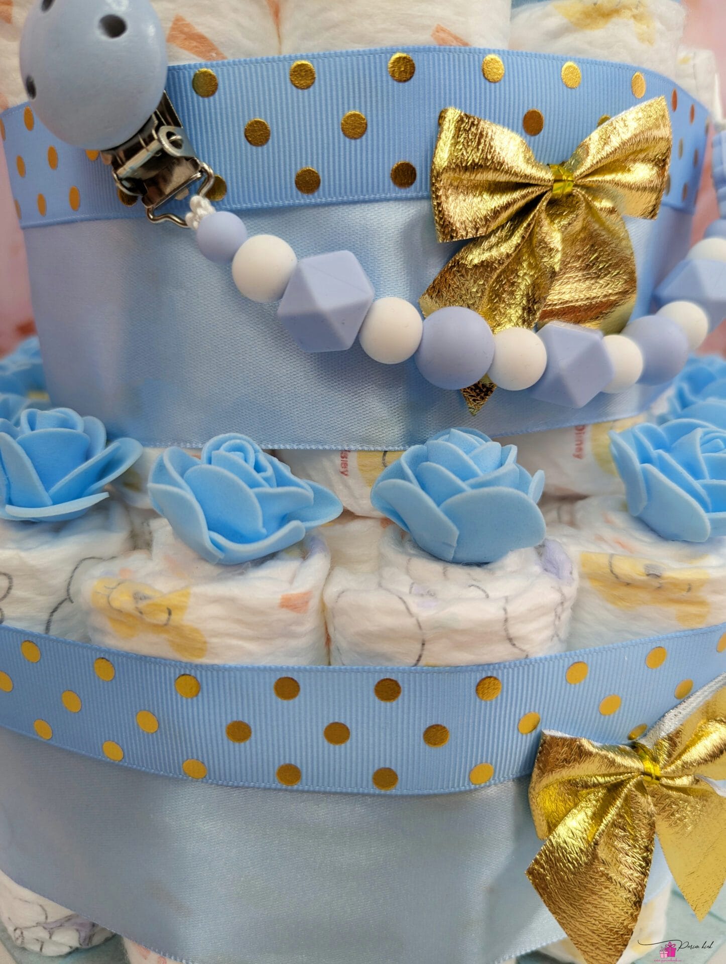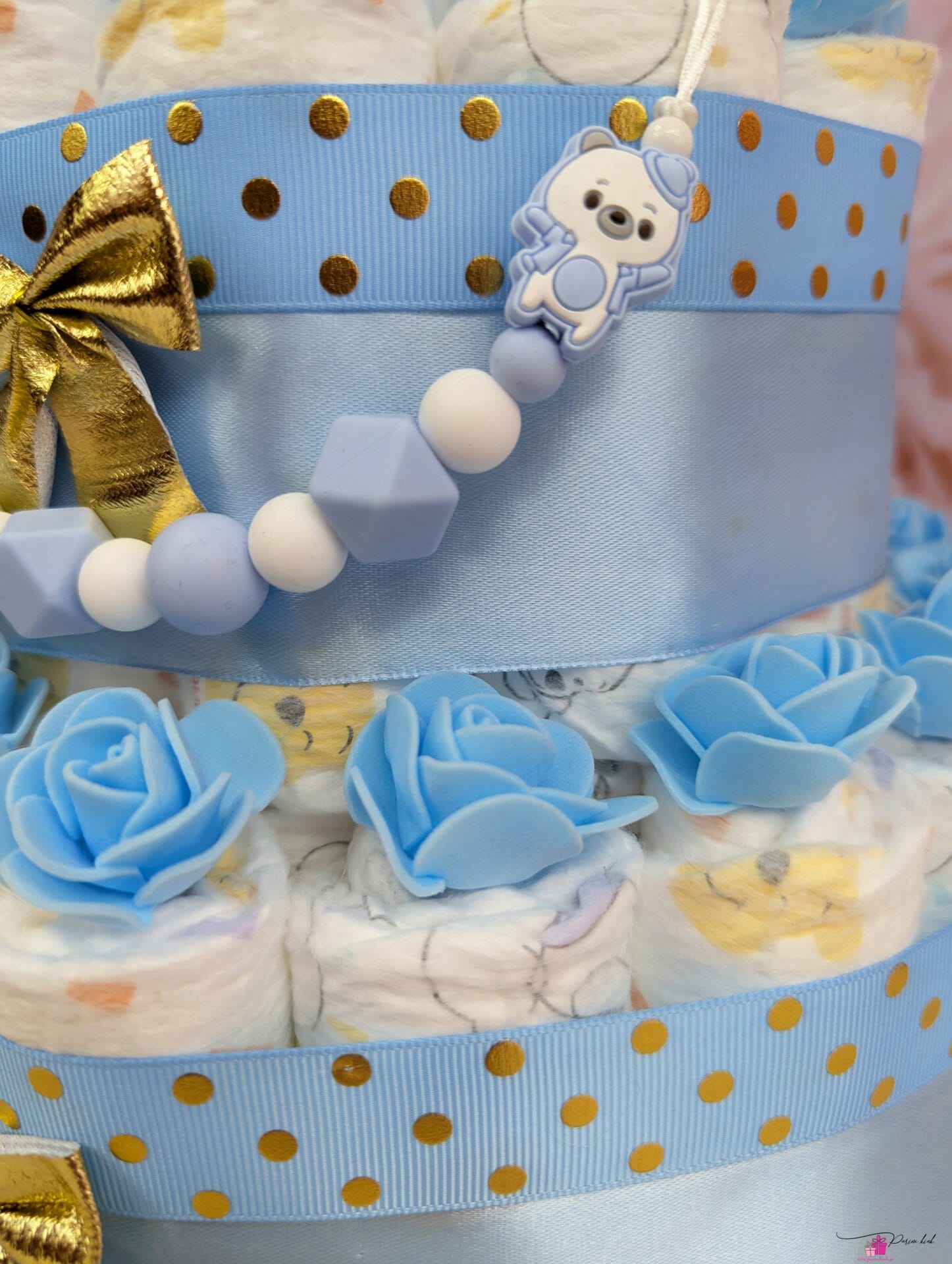 No Te vaadake neid nunnusid kuldseid täpikesi, oeh.. Selle mähkmetordiga saab beebi lisaks mähkmetele ka lutiketi, mida saab soovi korral valmistada ka nimelisena.
