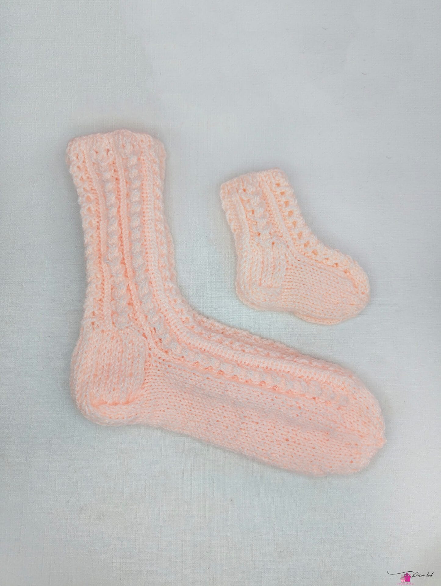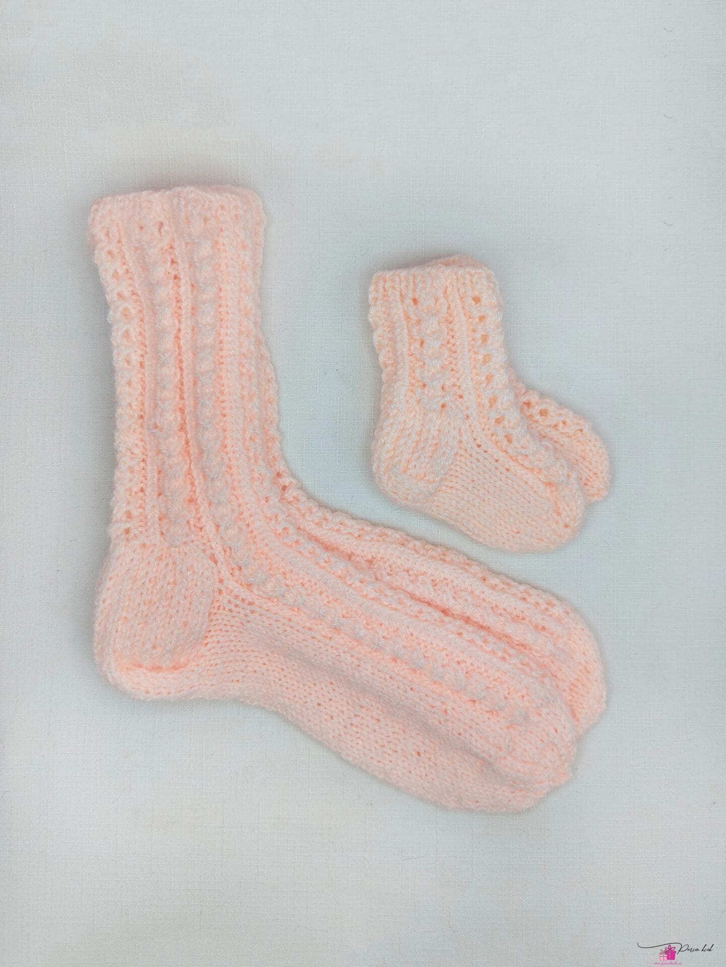 Käsitööna meie enda käsitsi kootud pitssokid emale ja beebile.