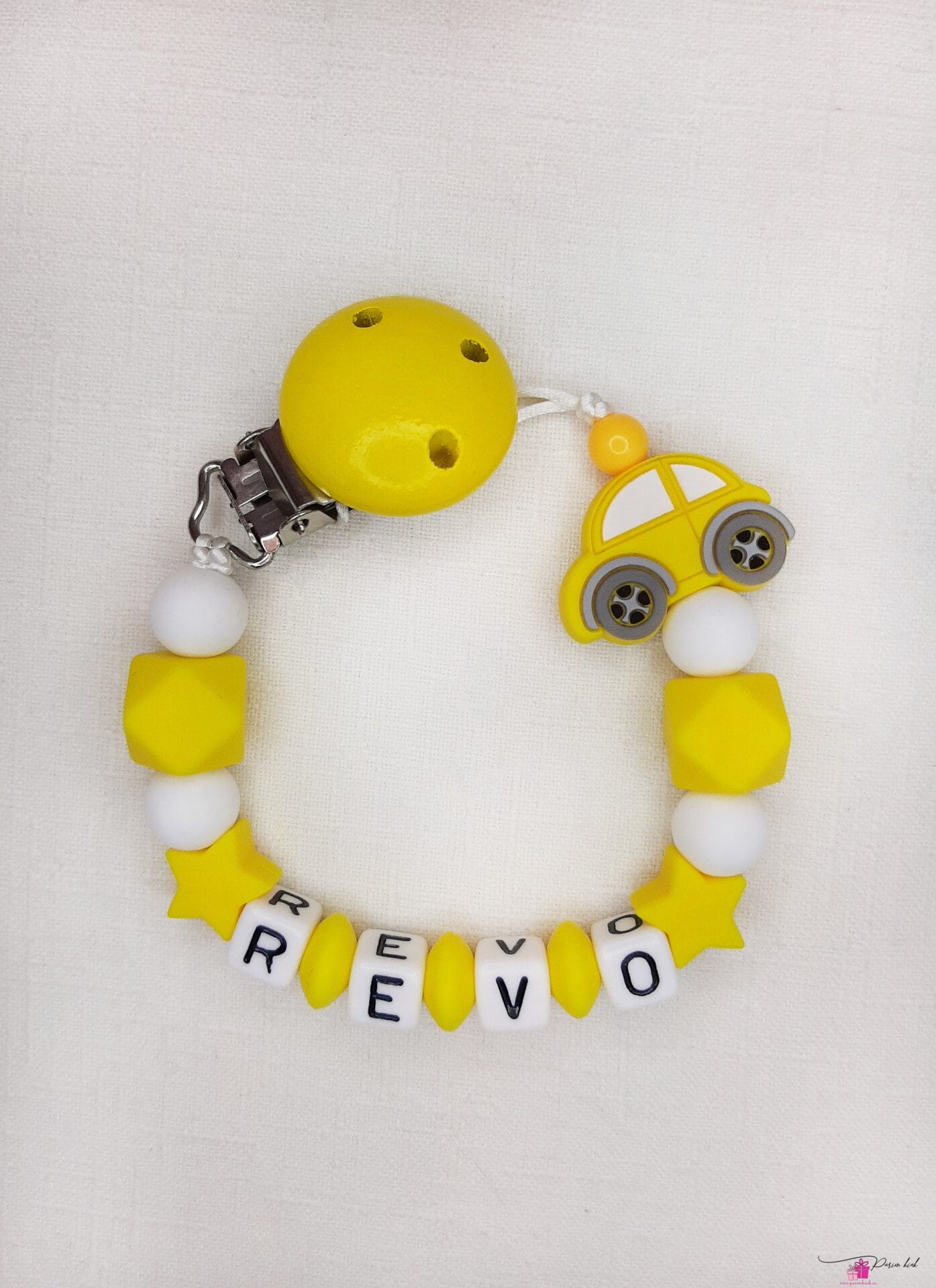 Lutiketi materjalina kasutame BPA vabast silikoonist pärleid, nimetähed akrüülist ning puidust kinnitust.