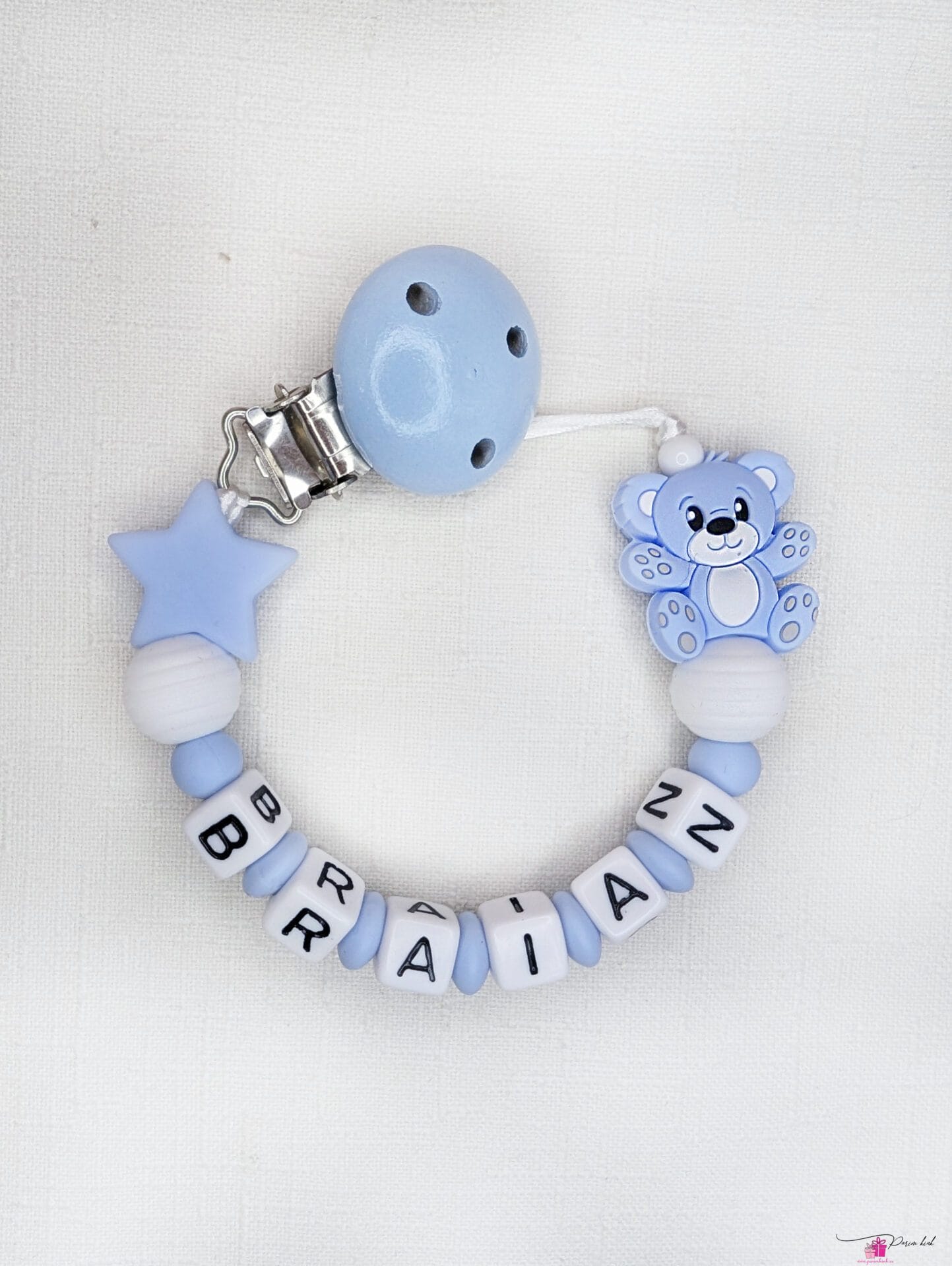 Lutiketi materjalina kasutame BPA vabast silikoonist pärleid, nimetähed akrüülist ning puidust kinnitust.