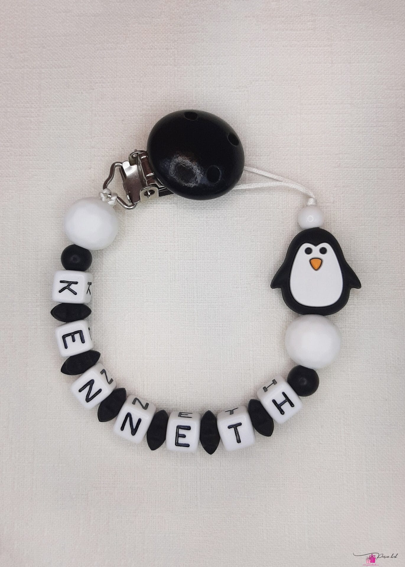 Lutiketi materjalina kasutame BPA vabast silikoonist pärleid, nimetähed akrüülist ning puidust kinnitust.