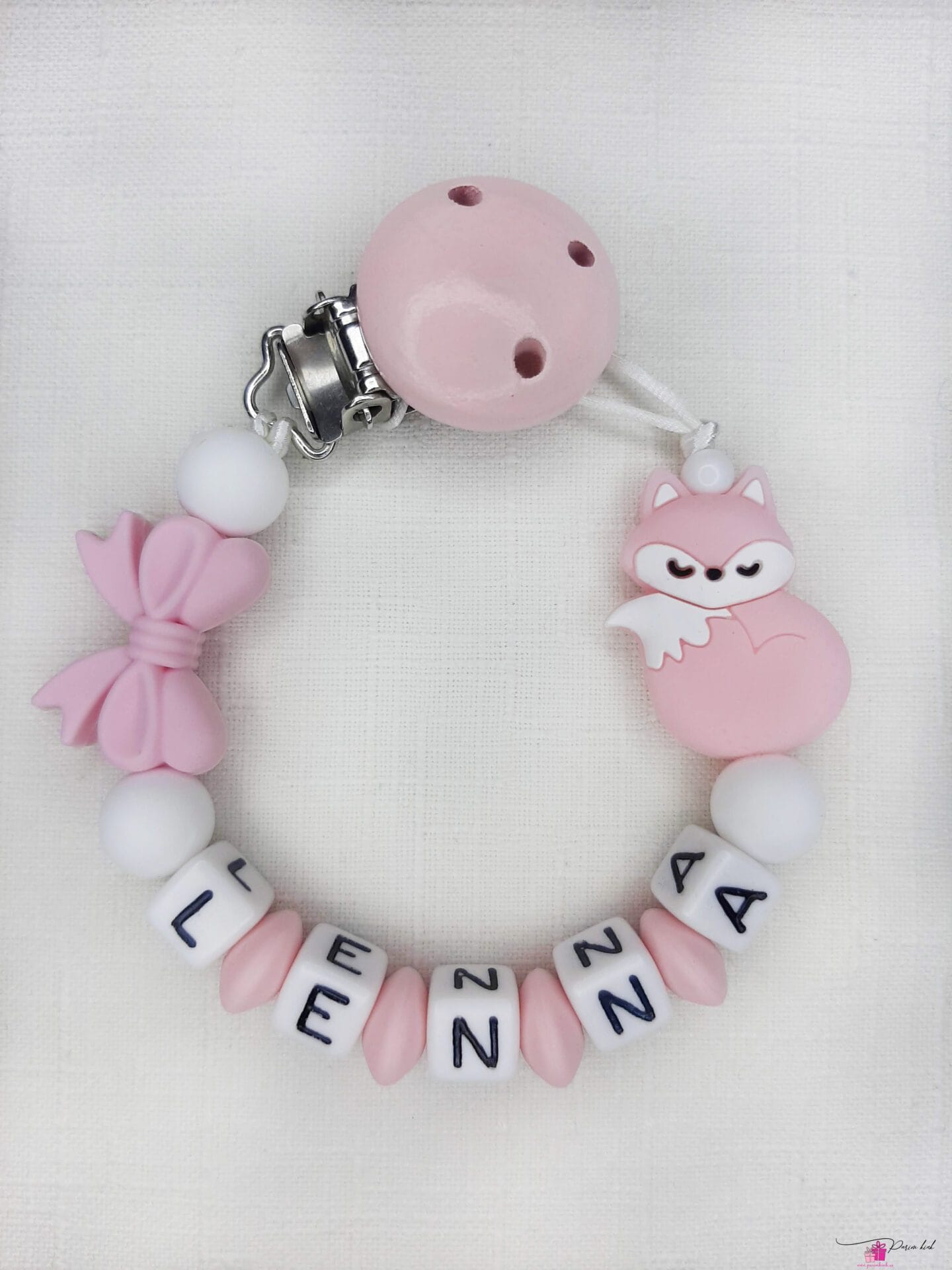 Lutiketi materjalina kasutame BPA vabast silikoonist pärleid, nimetähed akrüülist ning puidust kinnitust.