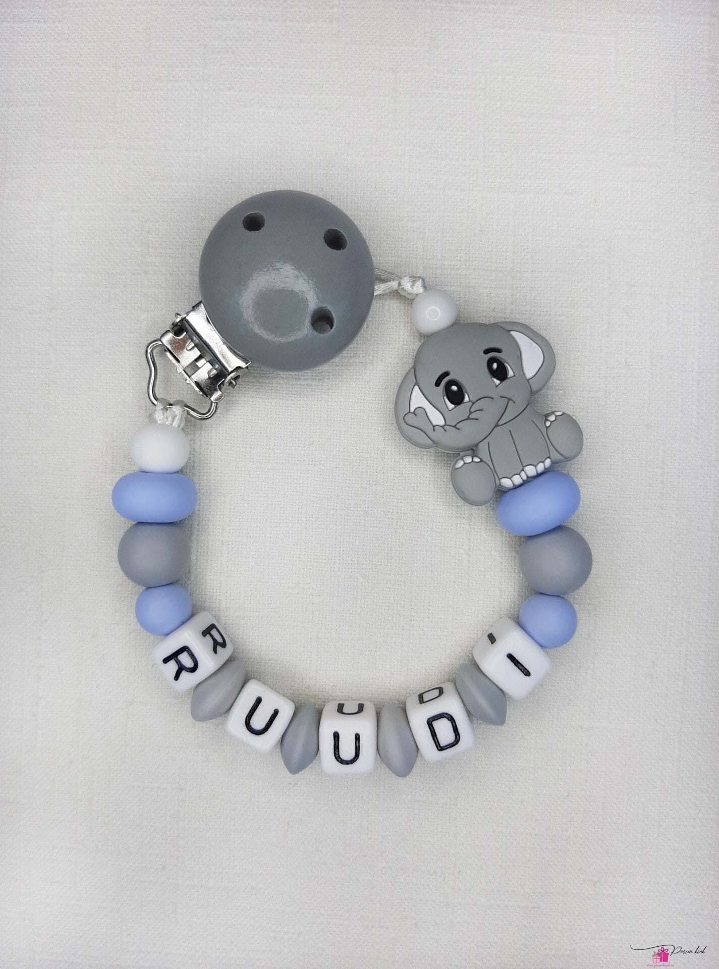 Lutiketi materjalina kasutame BPA vabast silikoonist pärleid, nimetähed akrüülist ning puidust kinnitust.