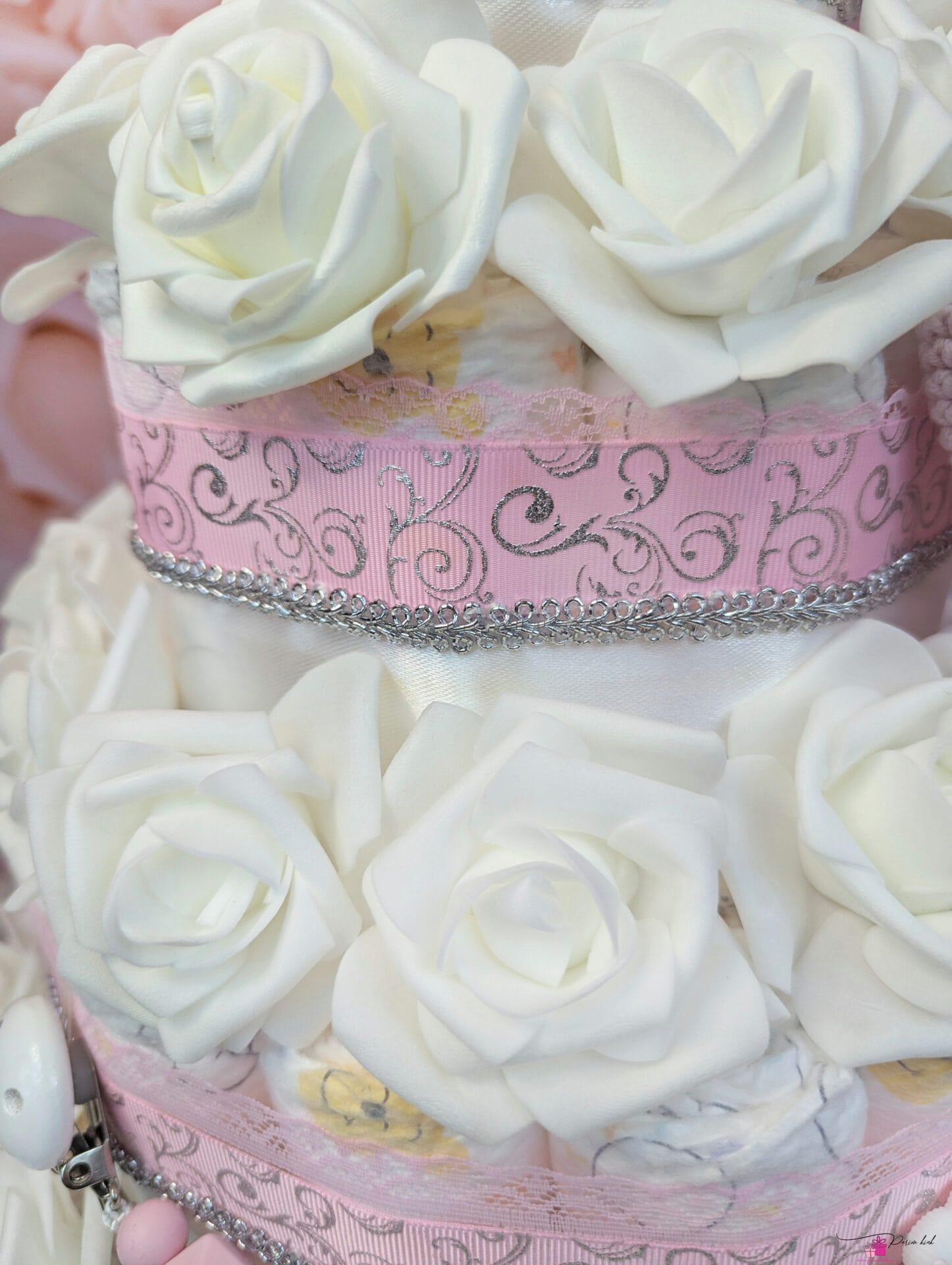 Mähkmetort on valmistatud 103-st mähkmest, pakitud tsellofaani ning kaunistatud suure rosetiga.