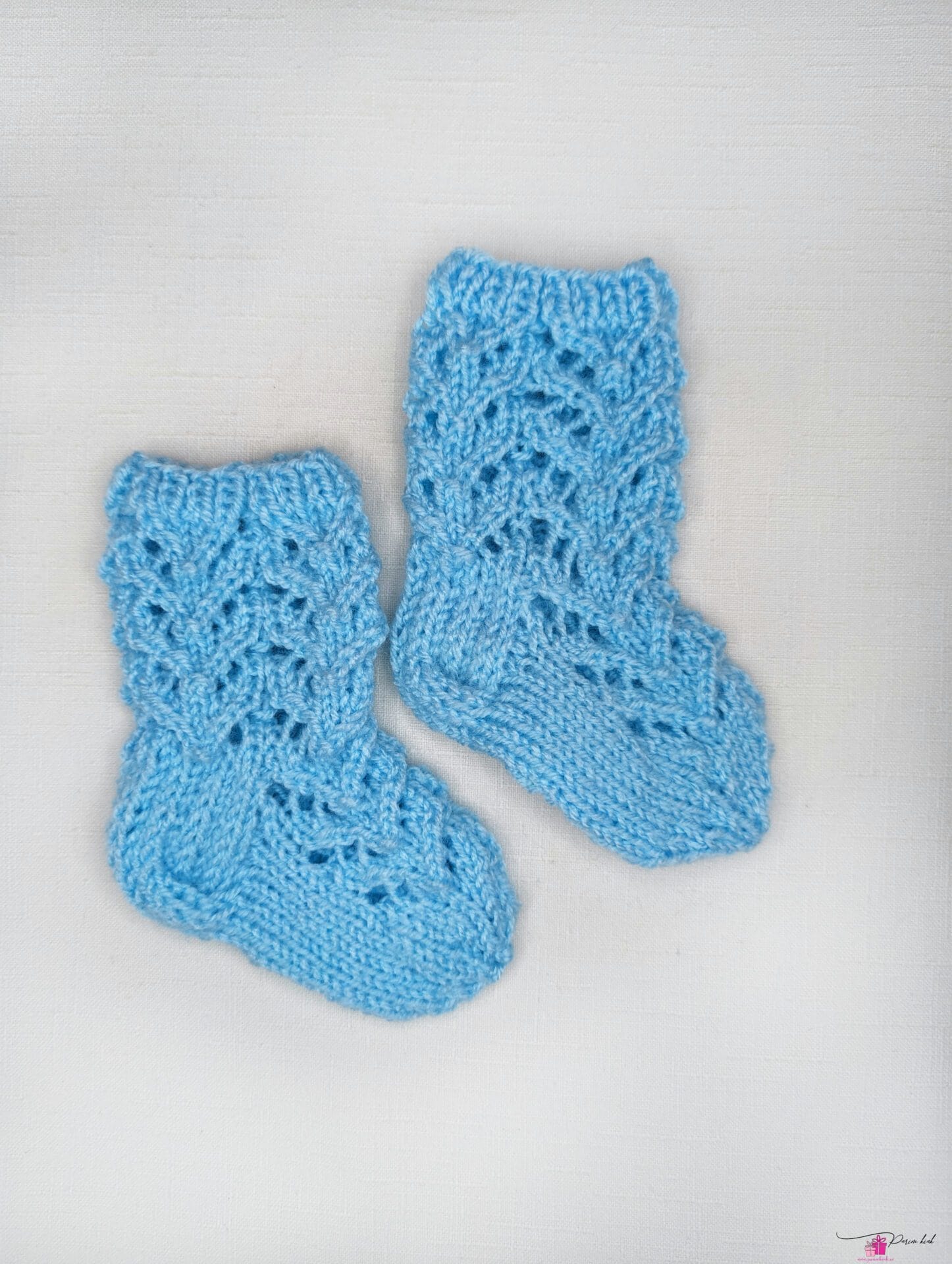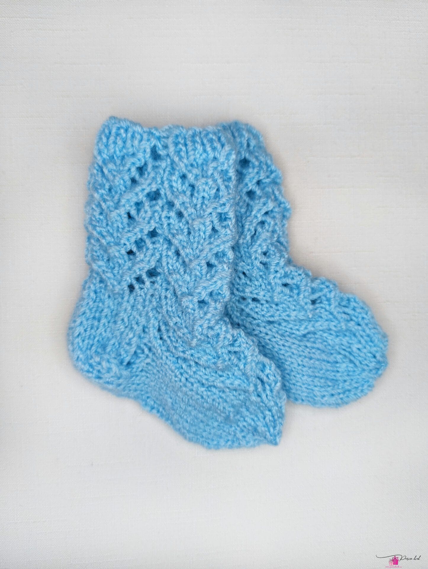 Käsitööna meie enda kootud pitssokid beebile, mis on sobilikud nii poisile kui ka tüdrukule.