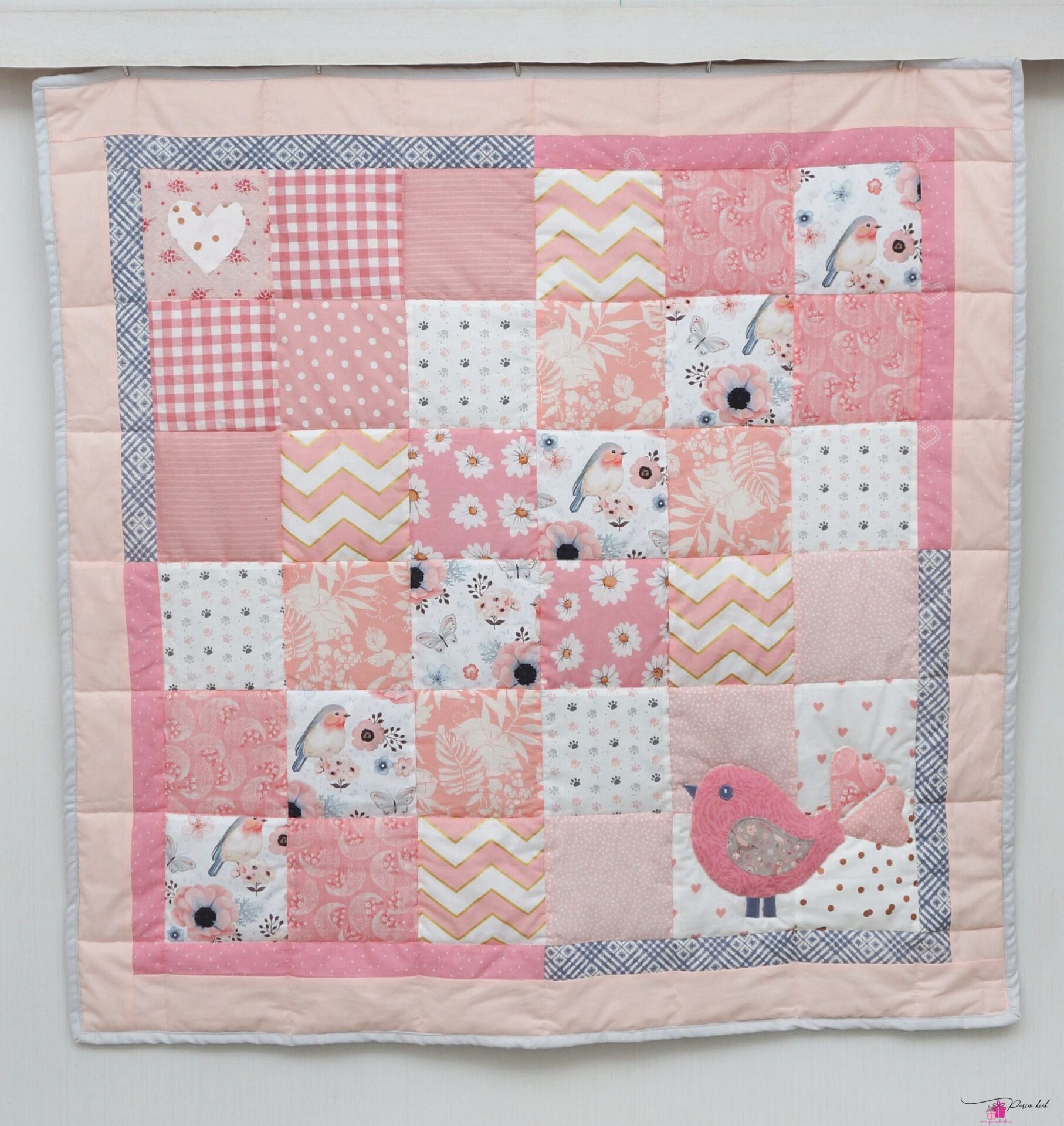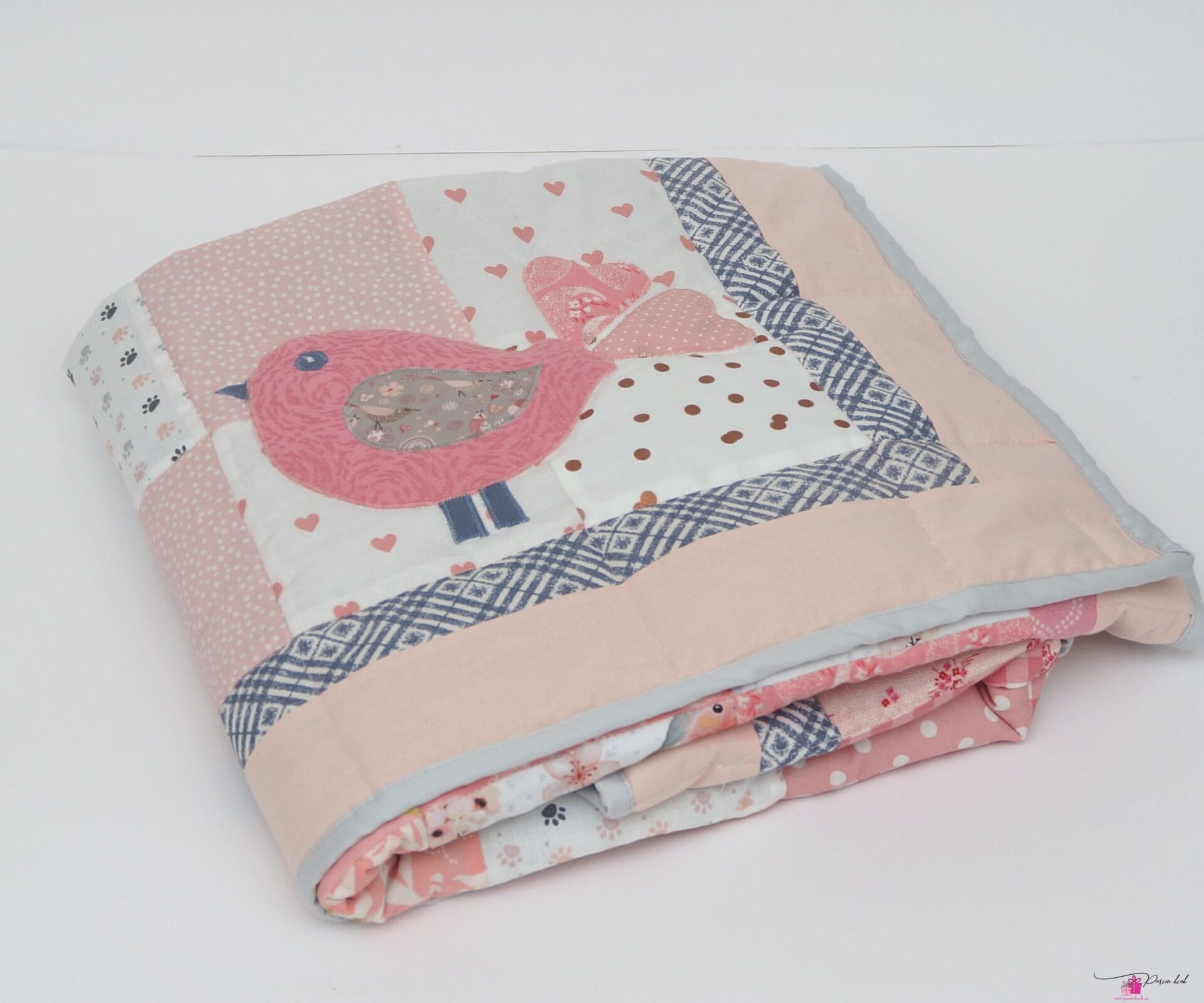 Armas roosa linnuga beebitekk, mis sobib suurepäraselt beebi esimeseks tekiks. Tekk on imearmas ja praktiline katsikukingitus. Õmmeldud puuvillastest kangastest ning sees on mahuline vatiin.