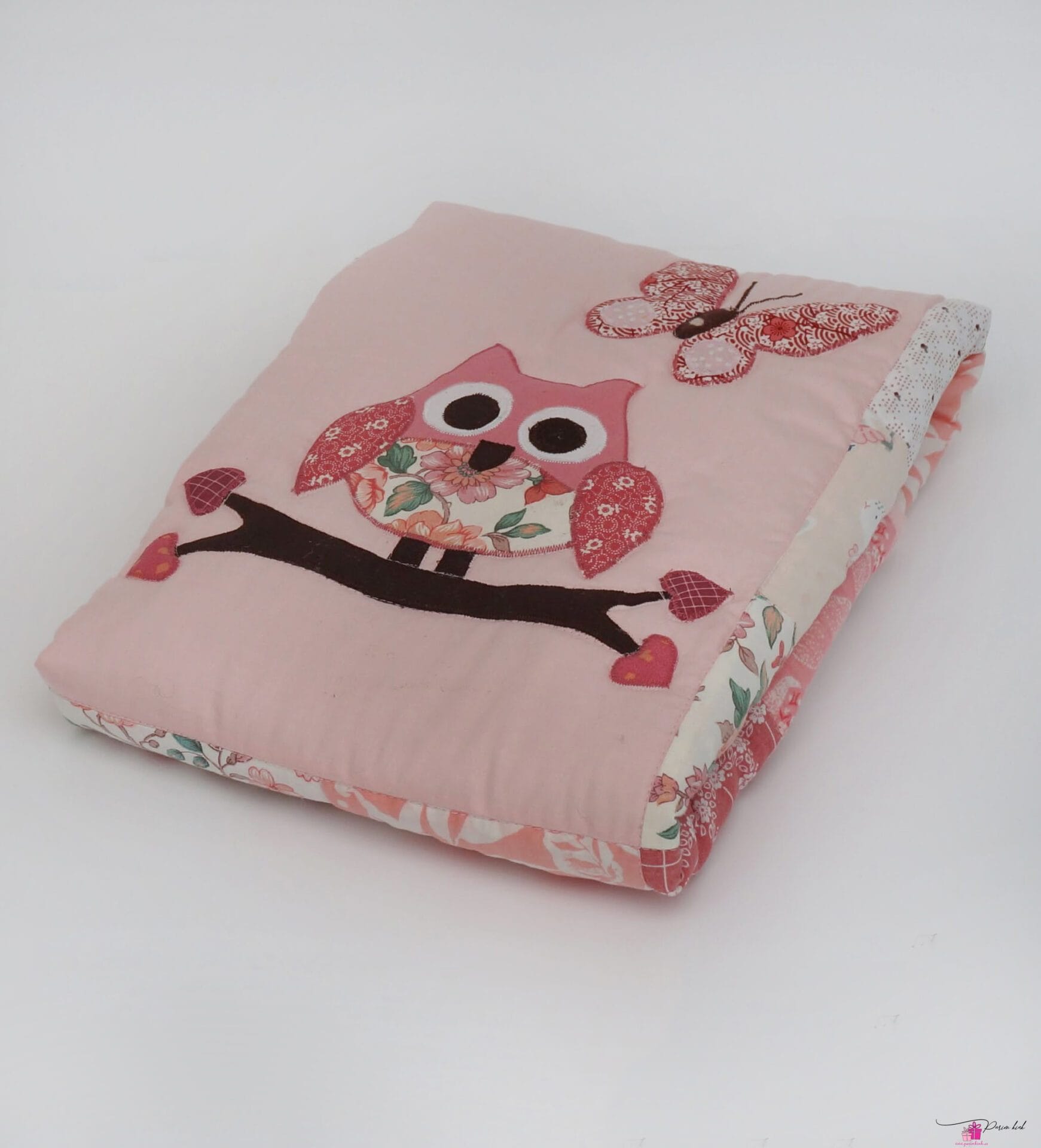 Armas roosa öökulli ja liblikaga beebitekk, mis sobib suurepäraselt beebi esimeseks tekiks. Tekk on imearmas ja praktiline katsikukingitus. Õmmeldud puuvillastest kangastest ning sees on mahuline vatiin.