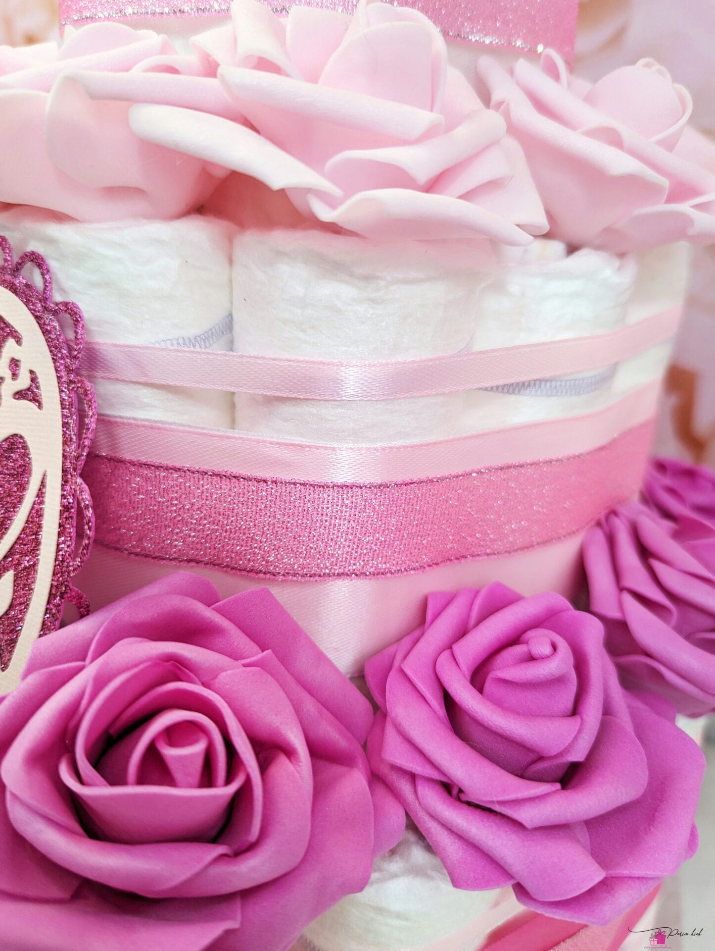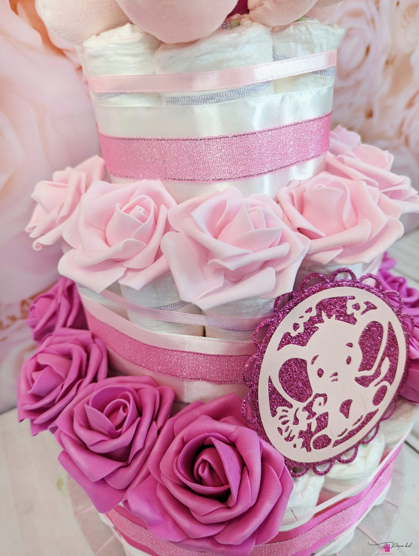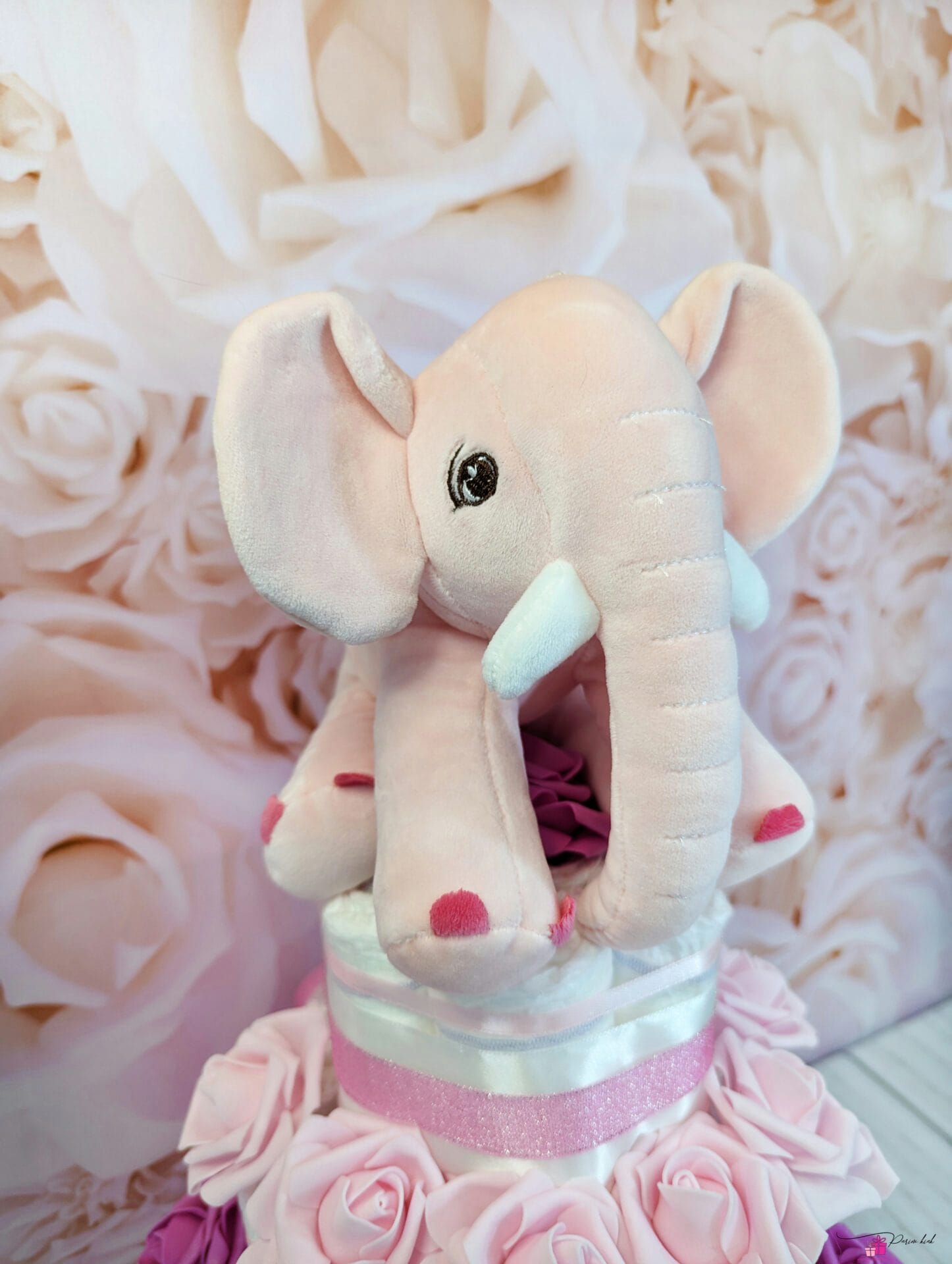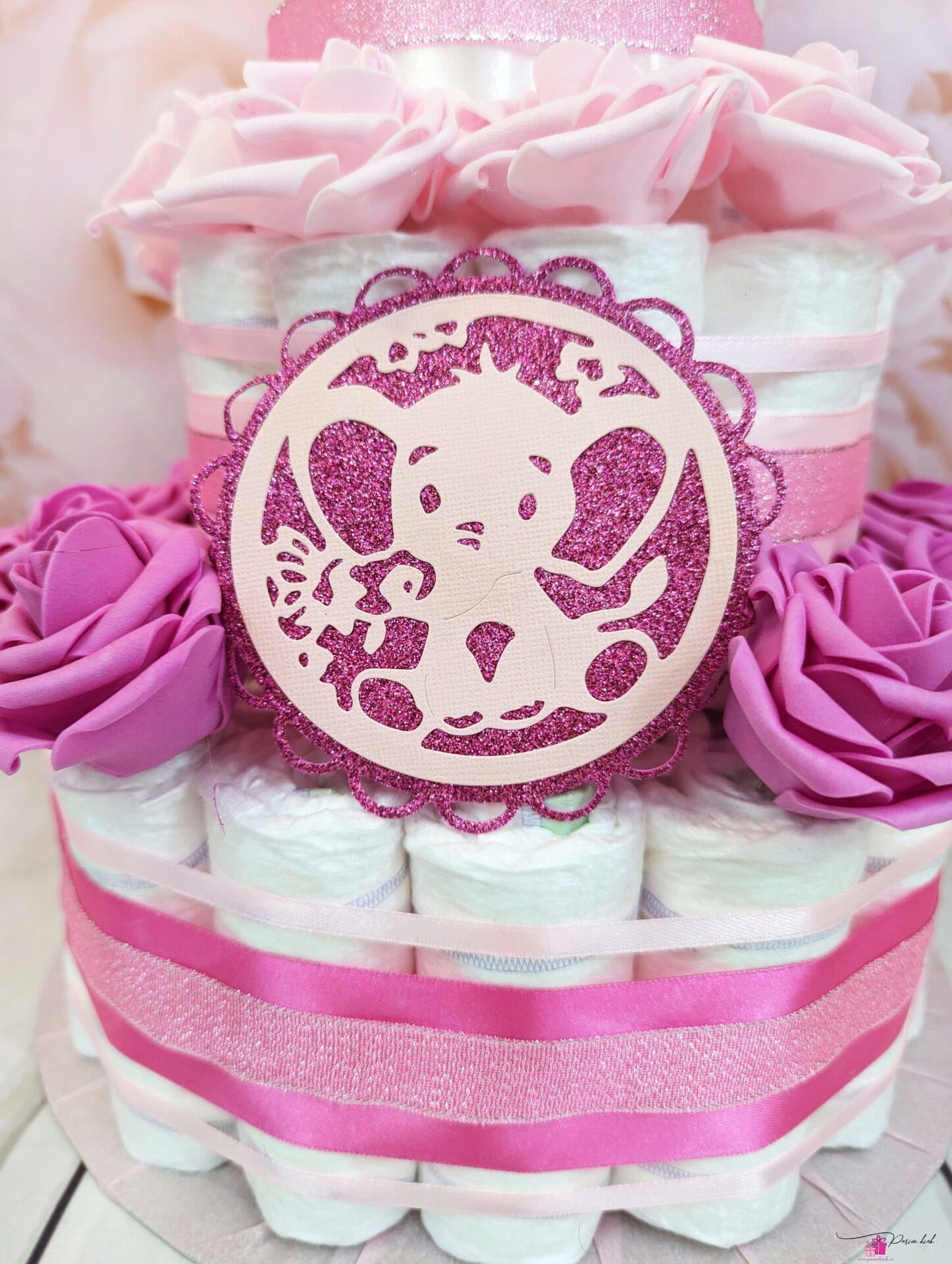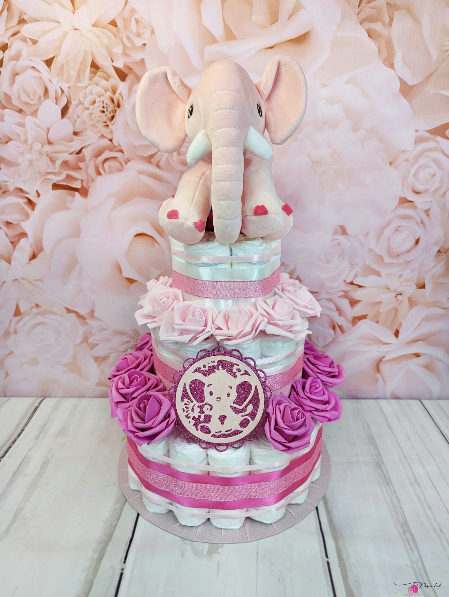 Ausalt, no vaadake seda roosat elevandiga mähkmetorti! Ja mis veel parem, sellele mähkmetordile on võimalik juurde lisada ka roosa elevandiga lutikett, mis võib olla nii nimeline kui ka nimeta, vastavalt soovile.