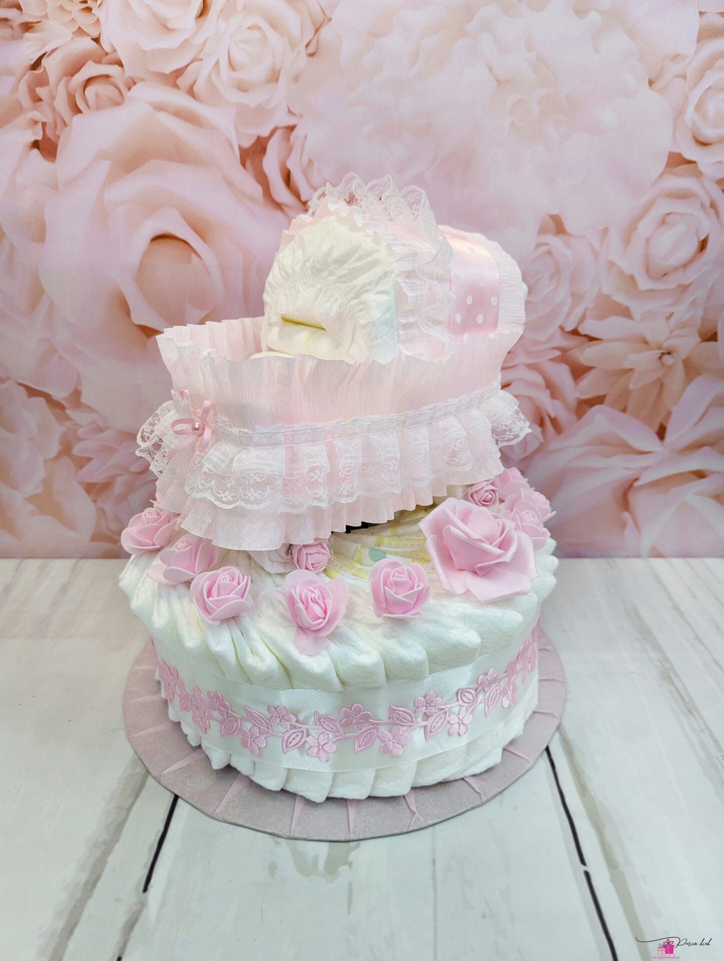 Mähkmetort on valmistatud 48-st mähkmest, pakitud tsellofaani ning kaunistatud suure rosetiga.