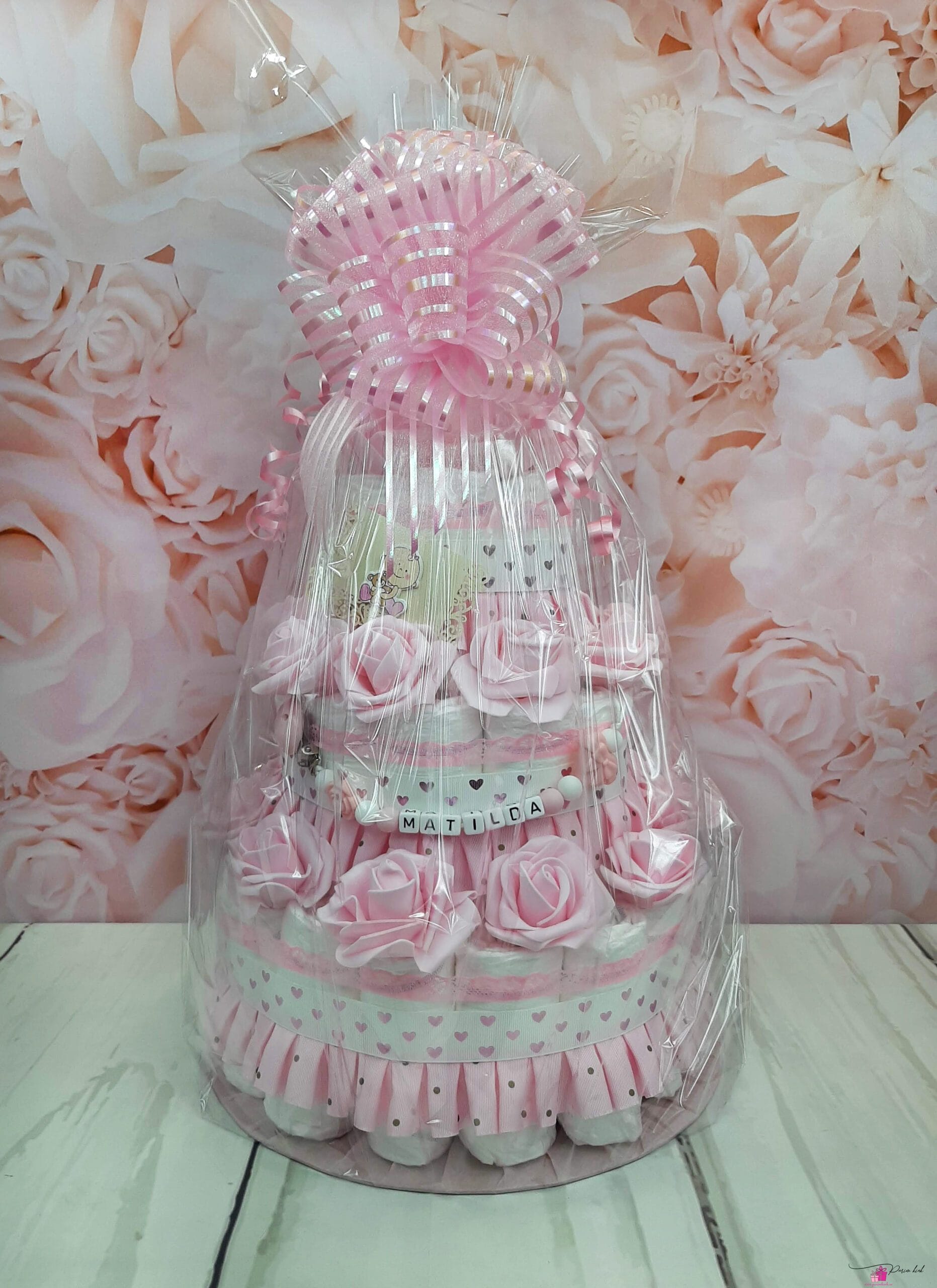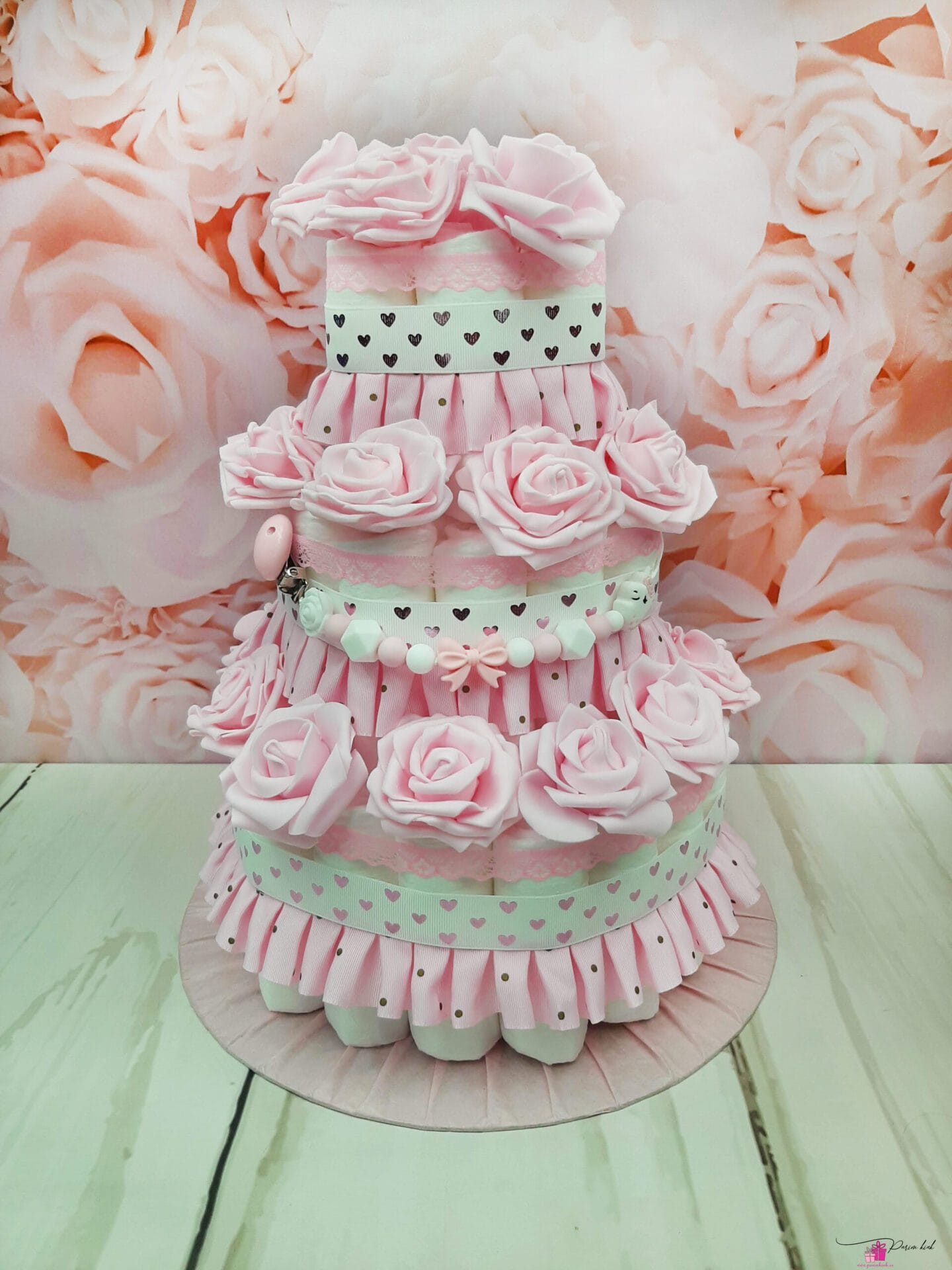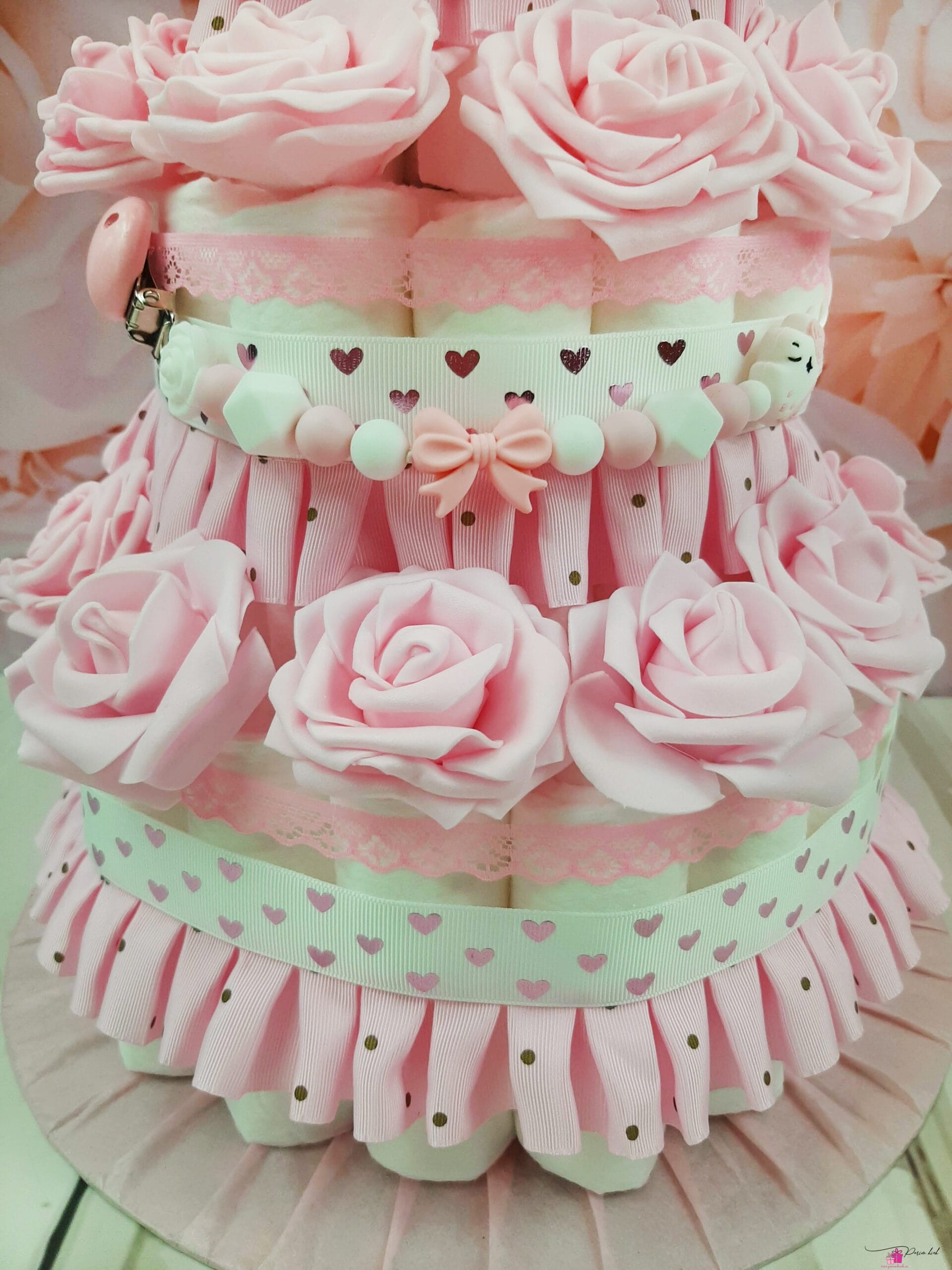 Roosa, sitside-satsidega mähkmetort, mis sisaldab lisaks mähkmetele ka BPA vabast silikoonist lutiketti. Lutiketiga mähkmetort ei ole mitte ainult ilus vaid ka väga praktiline kingitus.