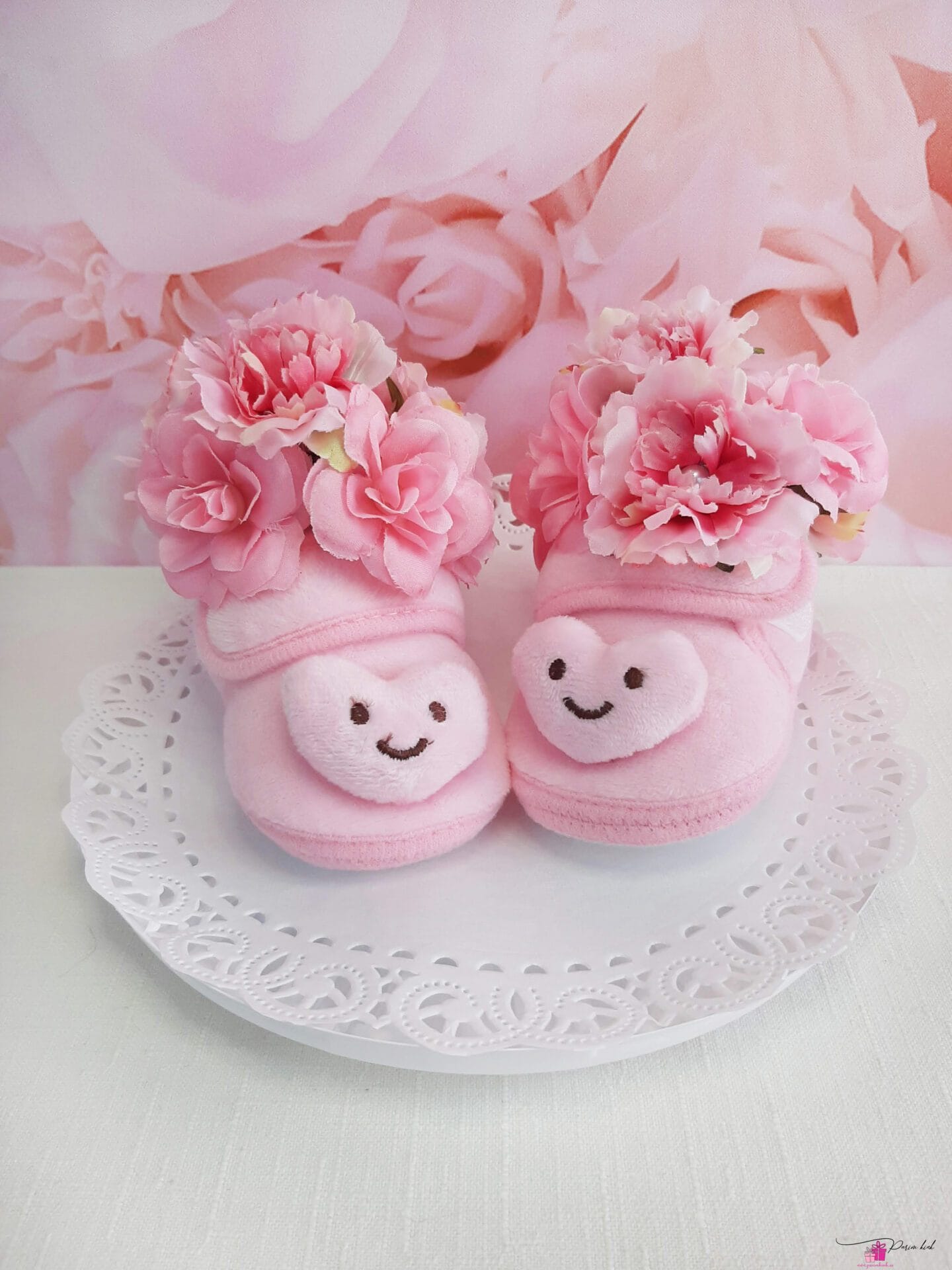 Papude kinkimine katsikuks o juba väga väga vana traditsioon. Ja miks mitte seda traditsiooni jätkata, kinkides pisikesele printsessile ühed eriti vahvad, lilledega kaunistatud roosad südametega papud?!