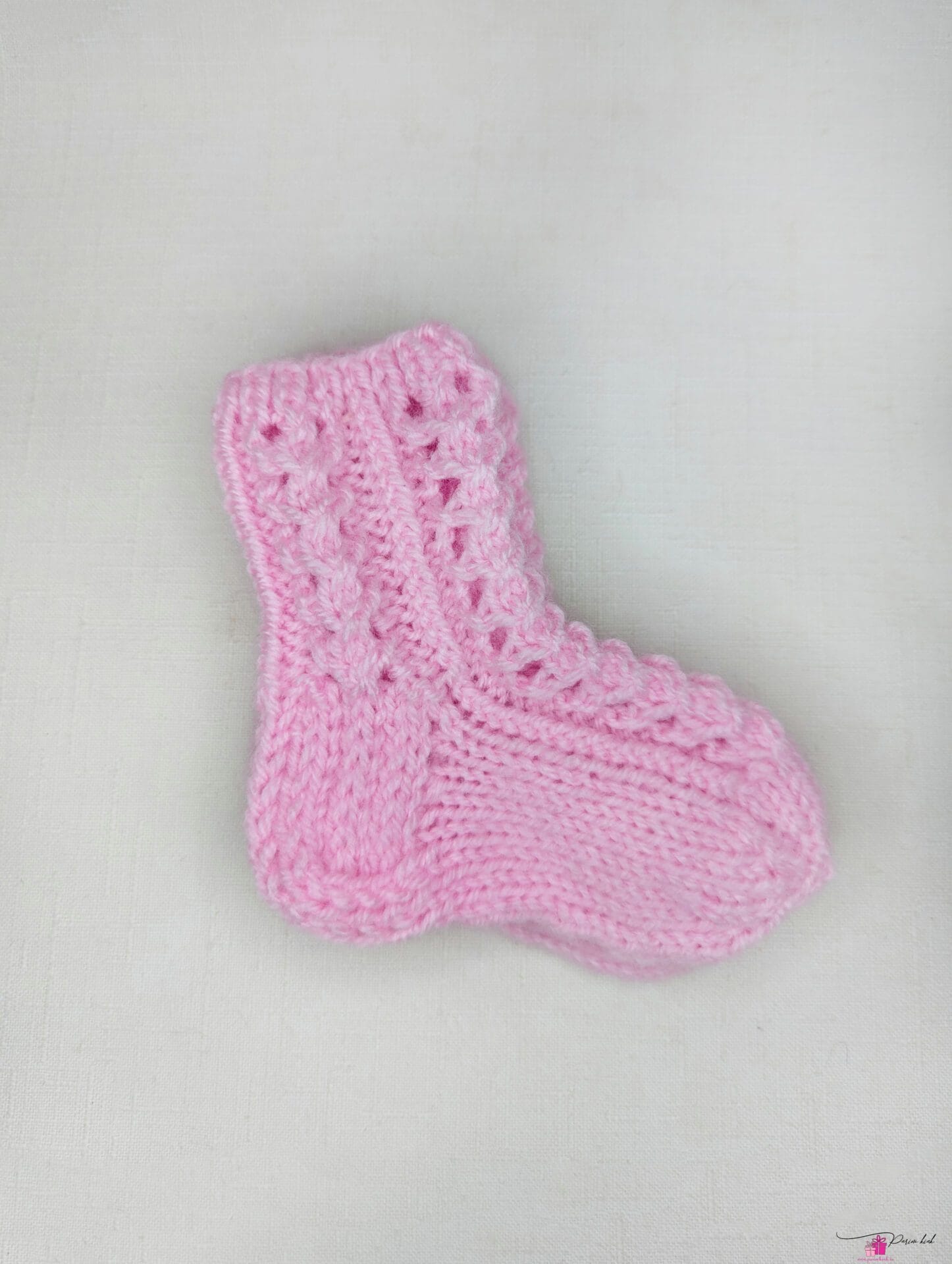 Käsitööna meie enda kootud pitssokid beebile.