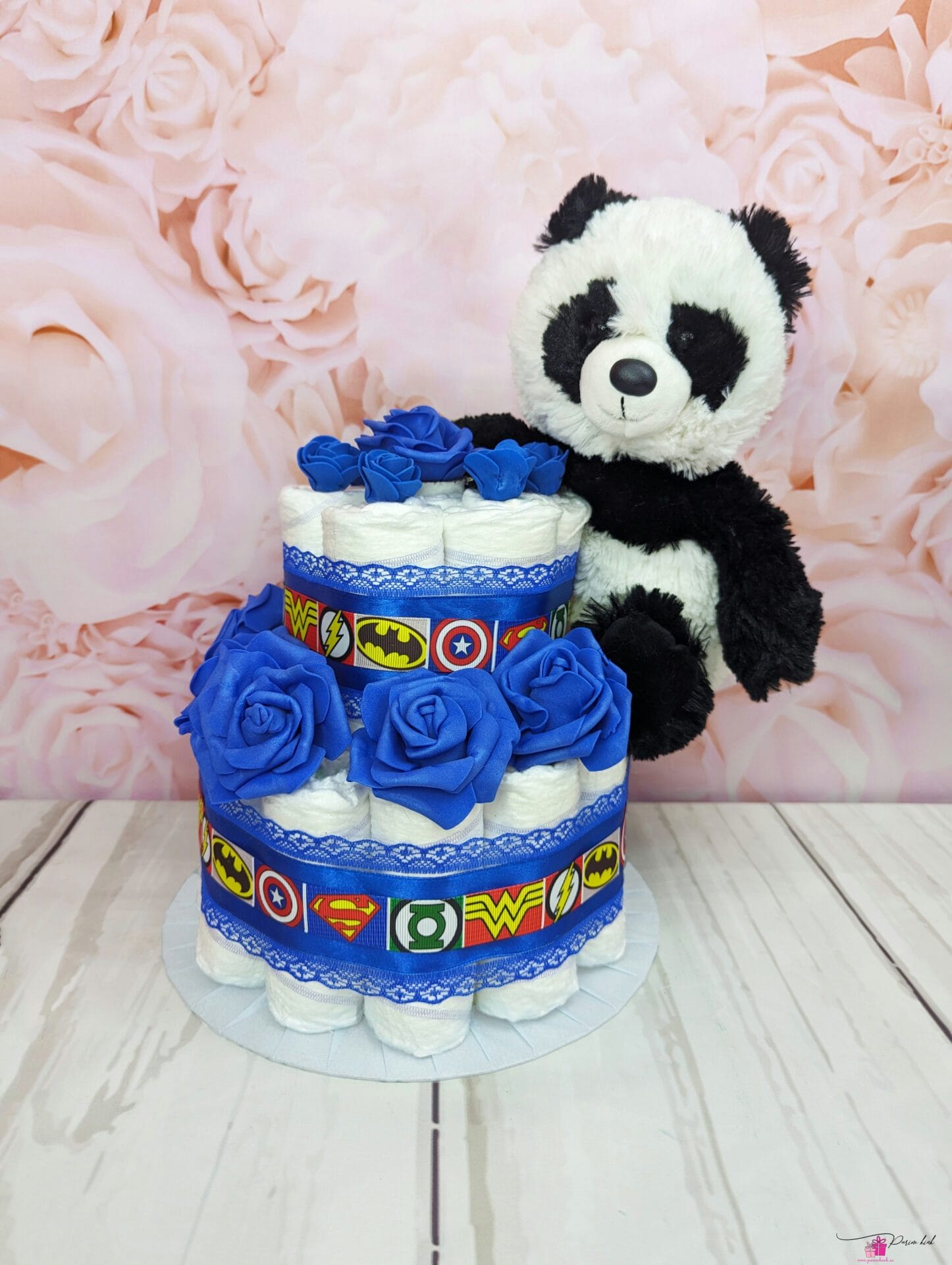No kuulge, kes siis ei tahaks endale päris enda superkangelaste torti? Mähkmetordil oleval paelal on esindatud kõik kõige ägedamad superkangelased, alustades Supermänist, Batmänist lõpetades Fläshi ja paljude teistega. Äge, eks! Tordiga tuleb kaasa ka pandakaru, keda saab uus ilmakodanik alguses kaisukaruna kasutada, aga hiljem hoopis kung-fu pandaks treenida.
