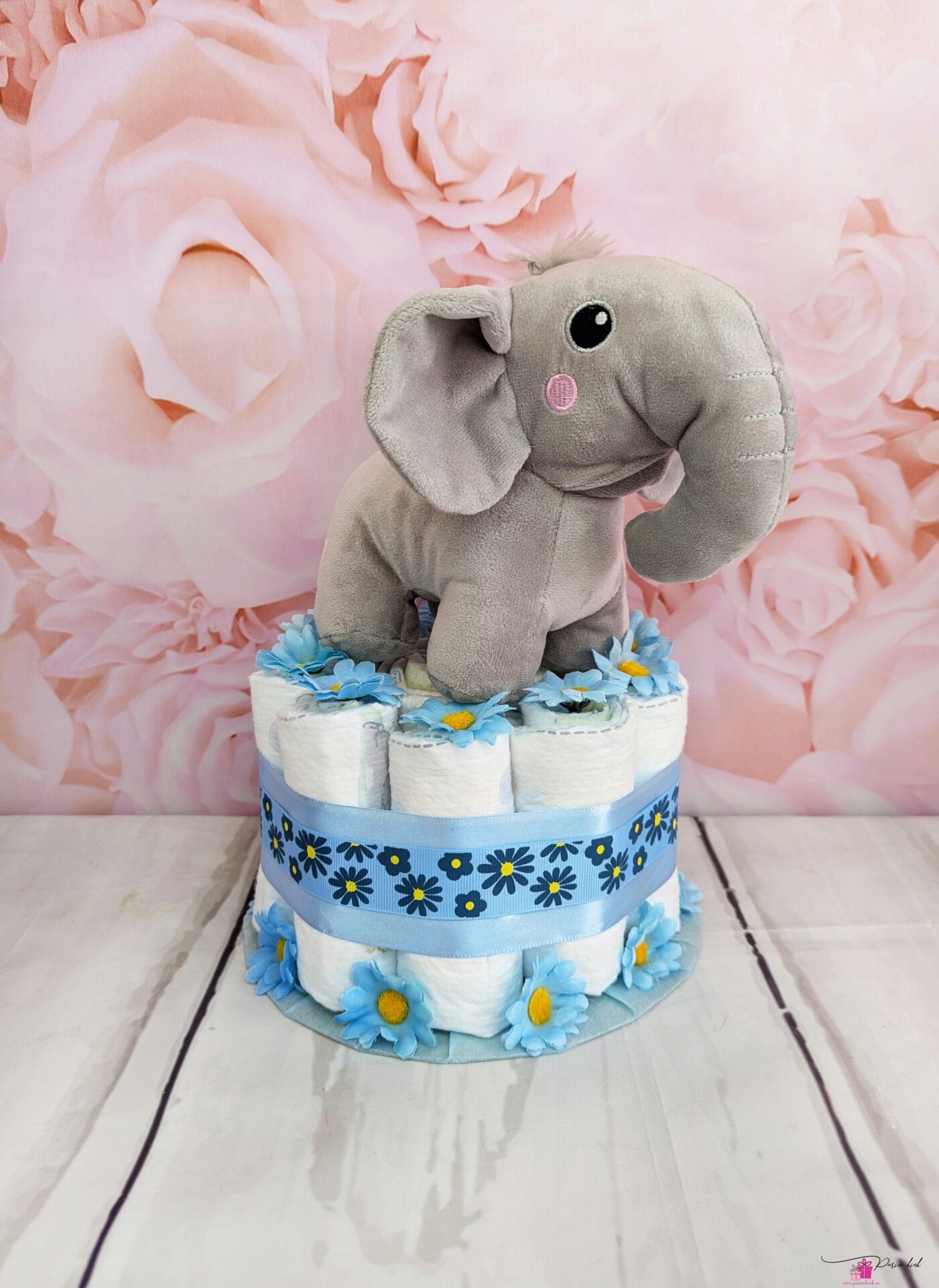 Mähkmetort on valmistatud 14-st mähkmest, pakitud tsellofaani ning kaunistatud suure rosetiga.