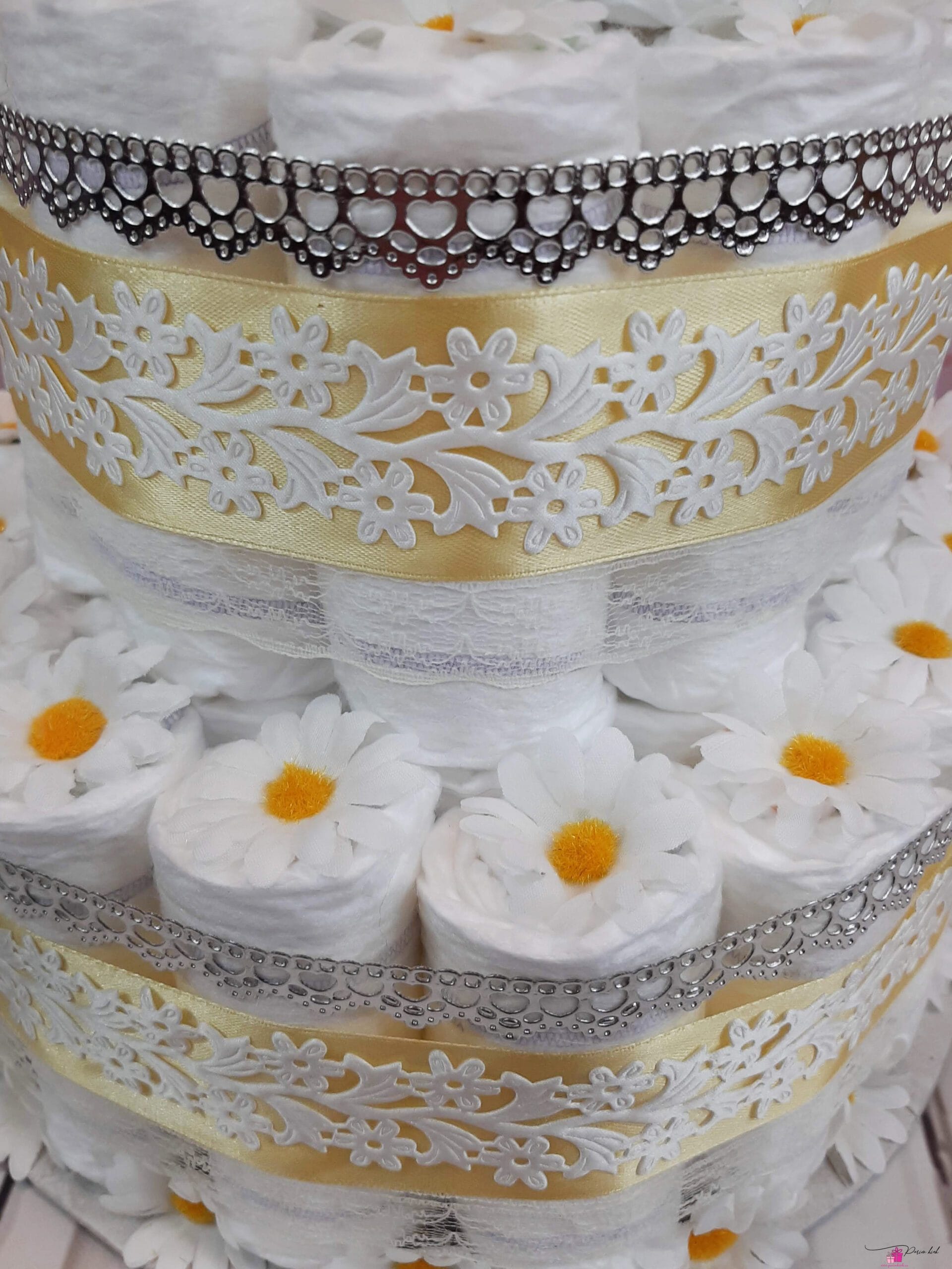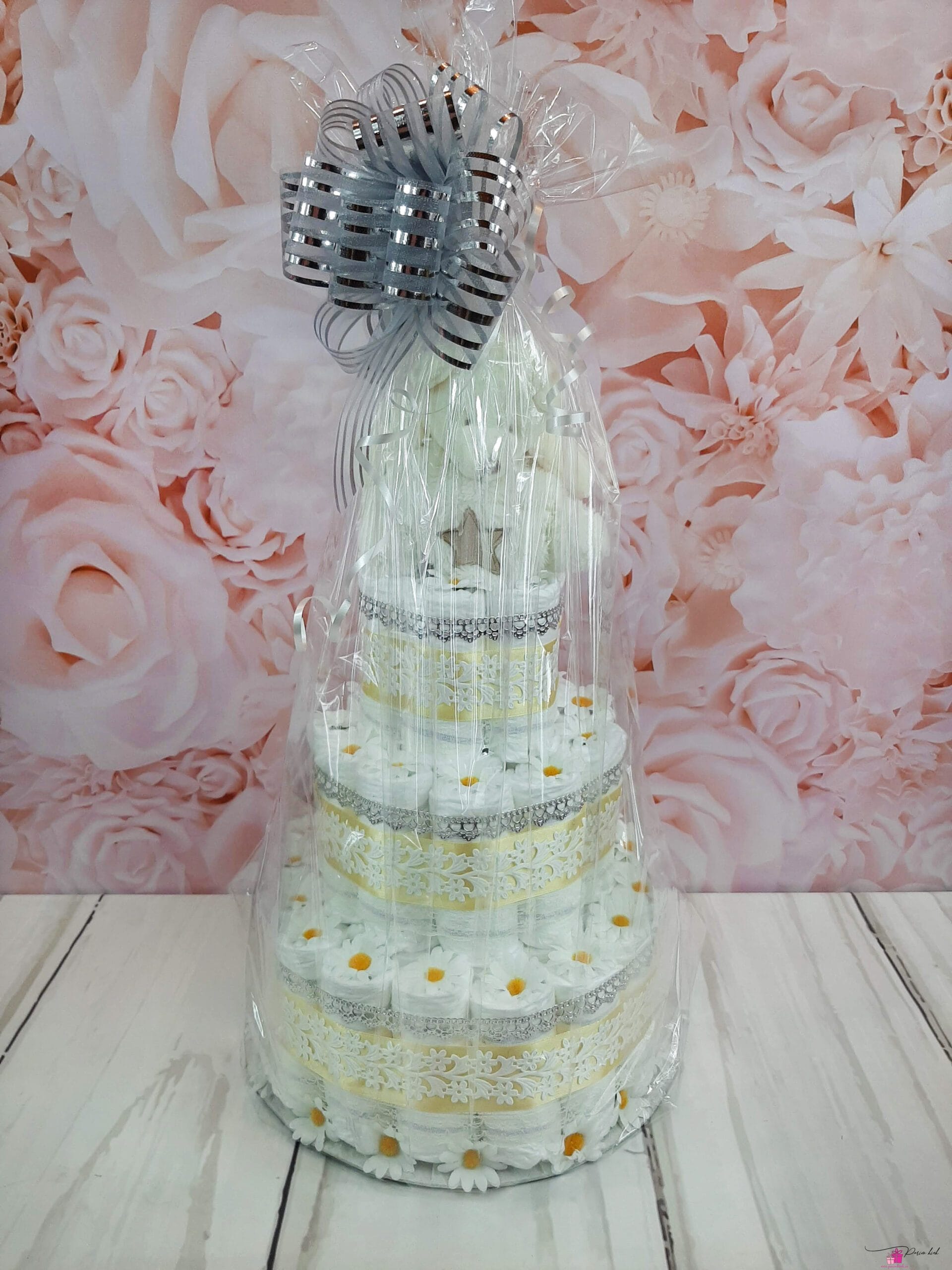 Mähkmetort on valmistatud 55-st mähkmest, pakitud tsellofaani ning kaunistatud suure rosetiga.