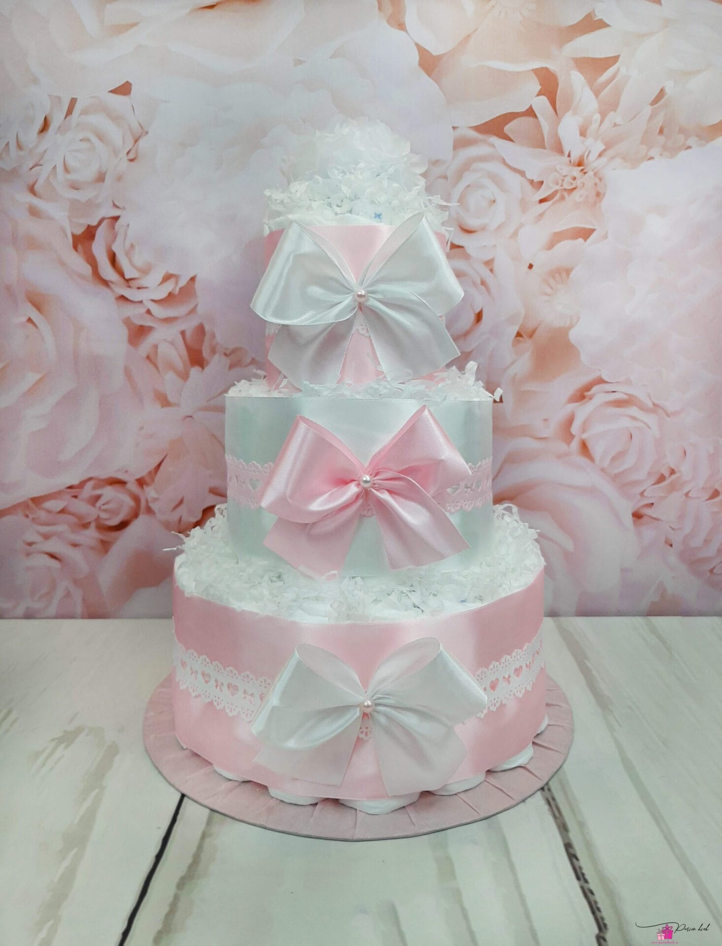 Tagasihoidlik mähkmetort, mis on sobilik kingitus kõikidele värsketele vanematele, kes ei ole kunstlillede fännid. Tegu on ühe tagasihoidliku, aga nummi tordiga, kus on iga detail tasakaalus.
