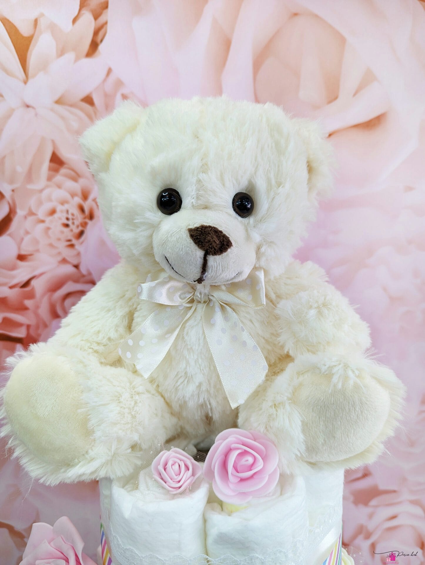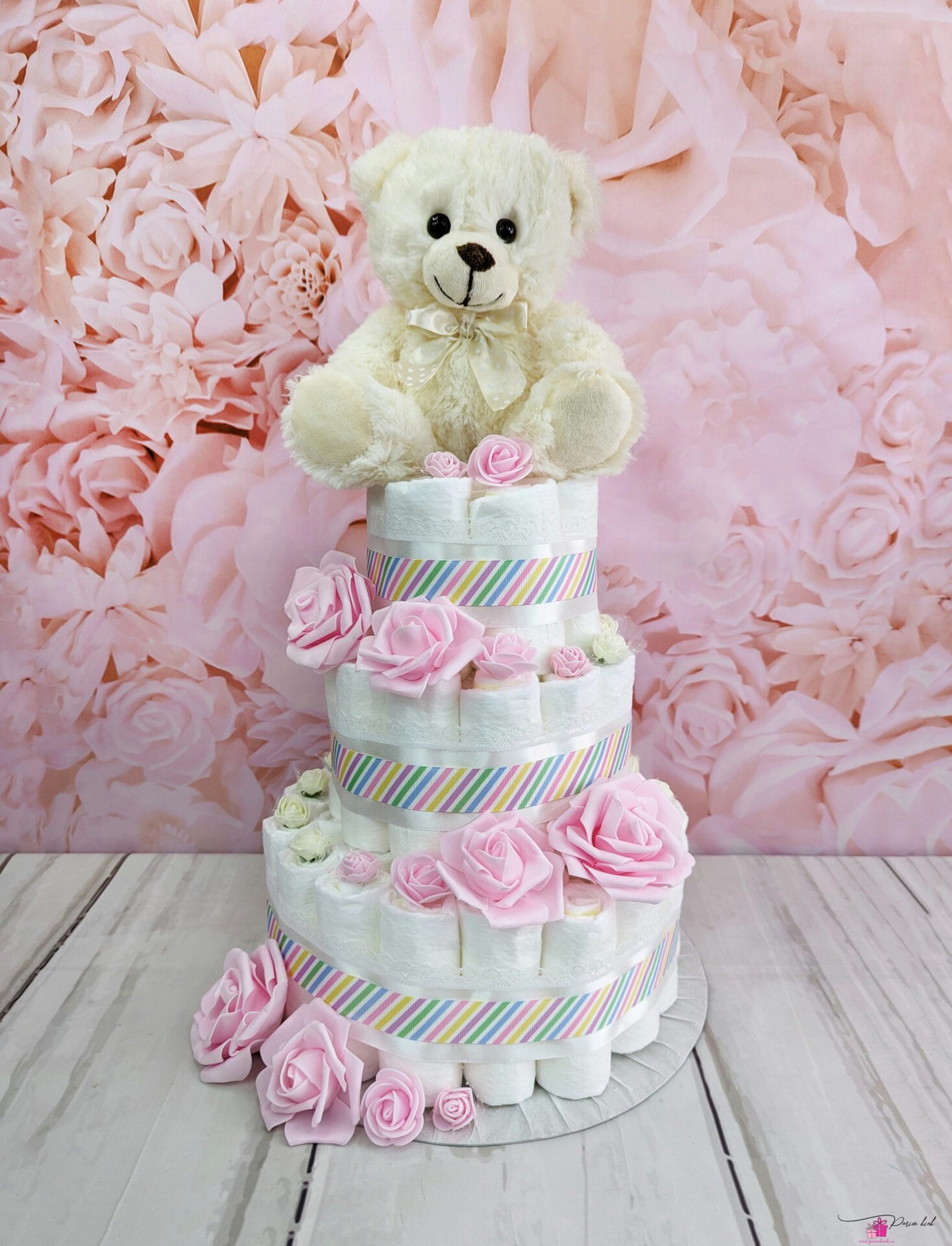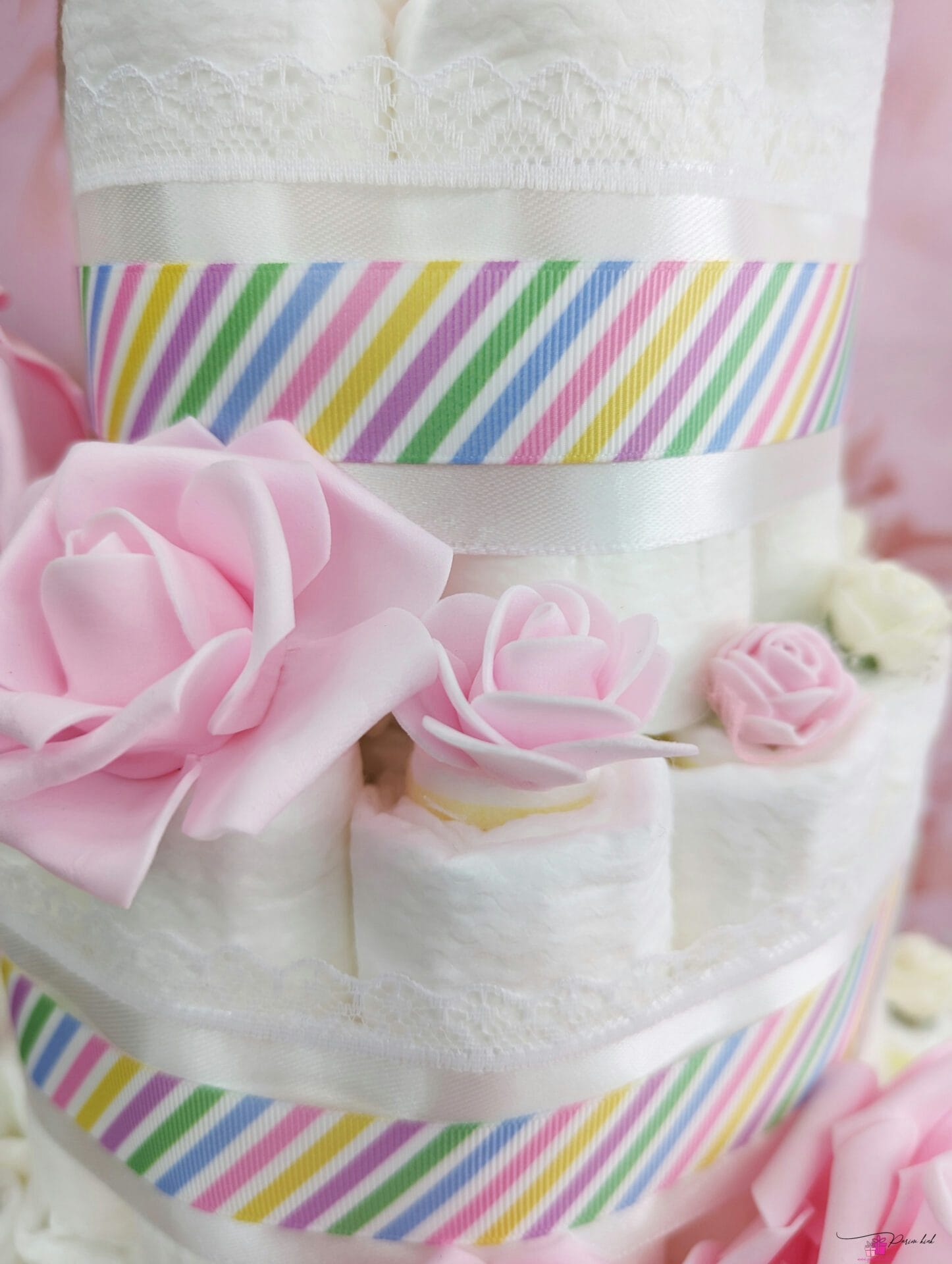 Karuga rõõmsavärviline mähkmetort on vahva kingitus, sest beebi saab lisaks mähkmetele ka endale vahva pehme kaisu-kaisu.