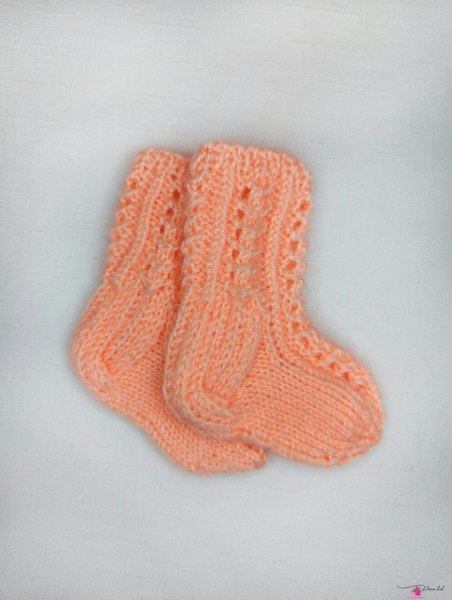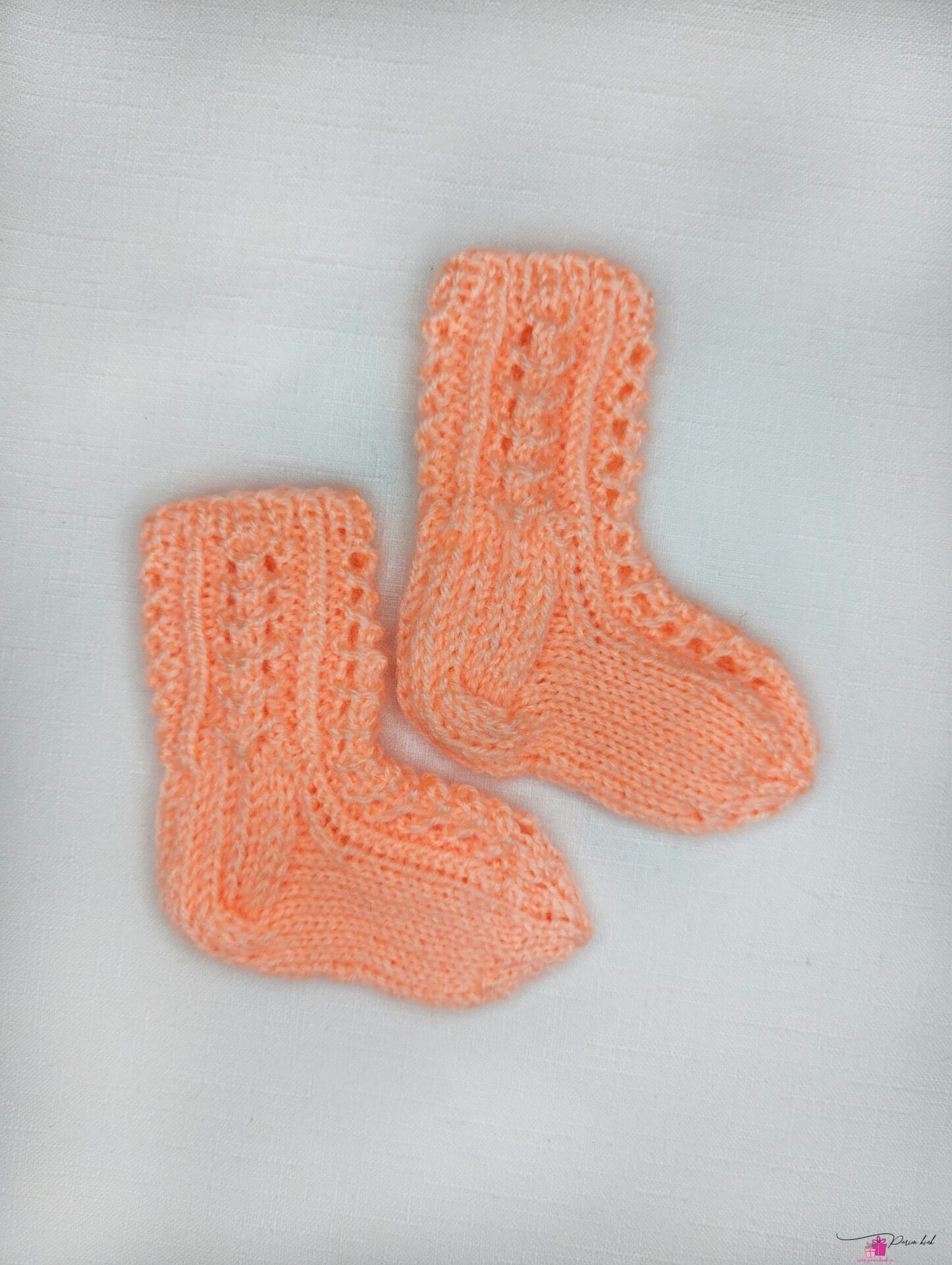 Käsitööna meie enda kootud pitssokid beebile.
